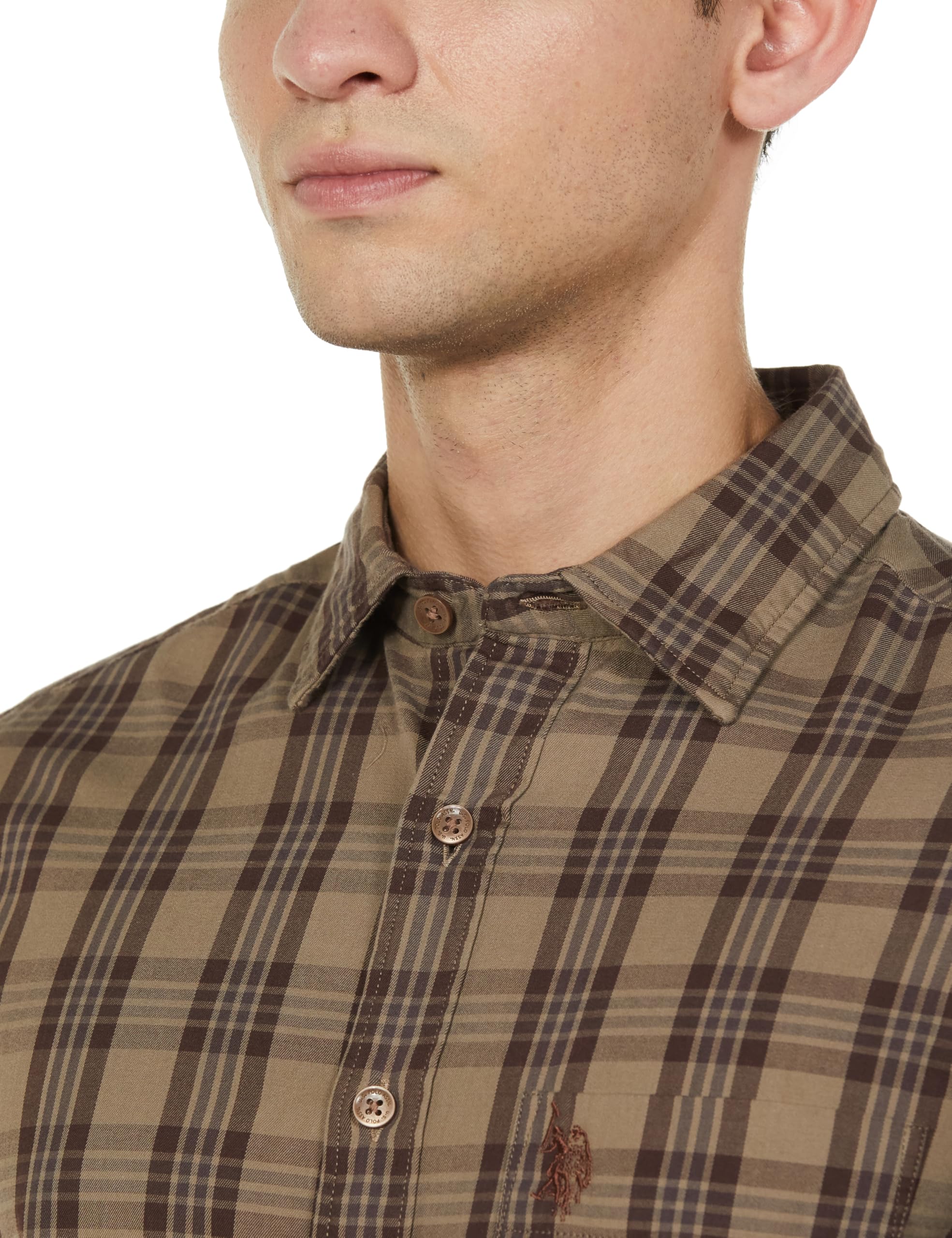 U.S.POLO ASSN. Men's Regular Fit Shirt (USSHTO3464_Lt. Brown