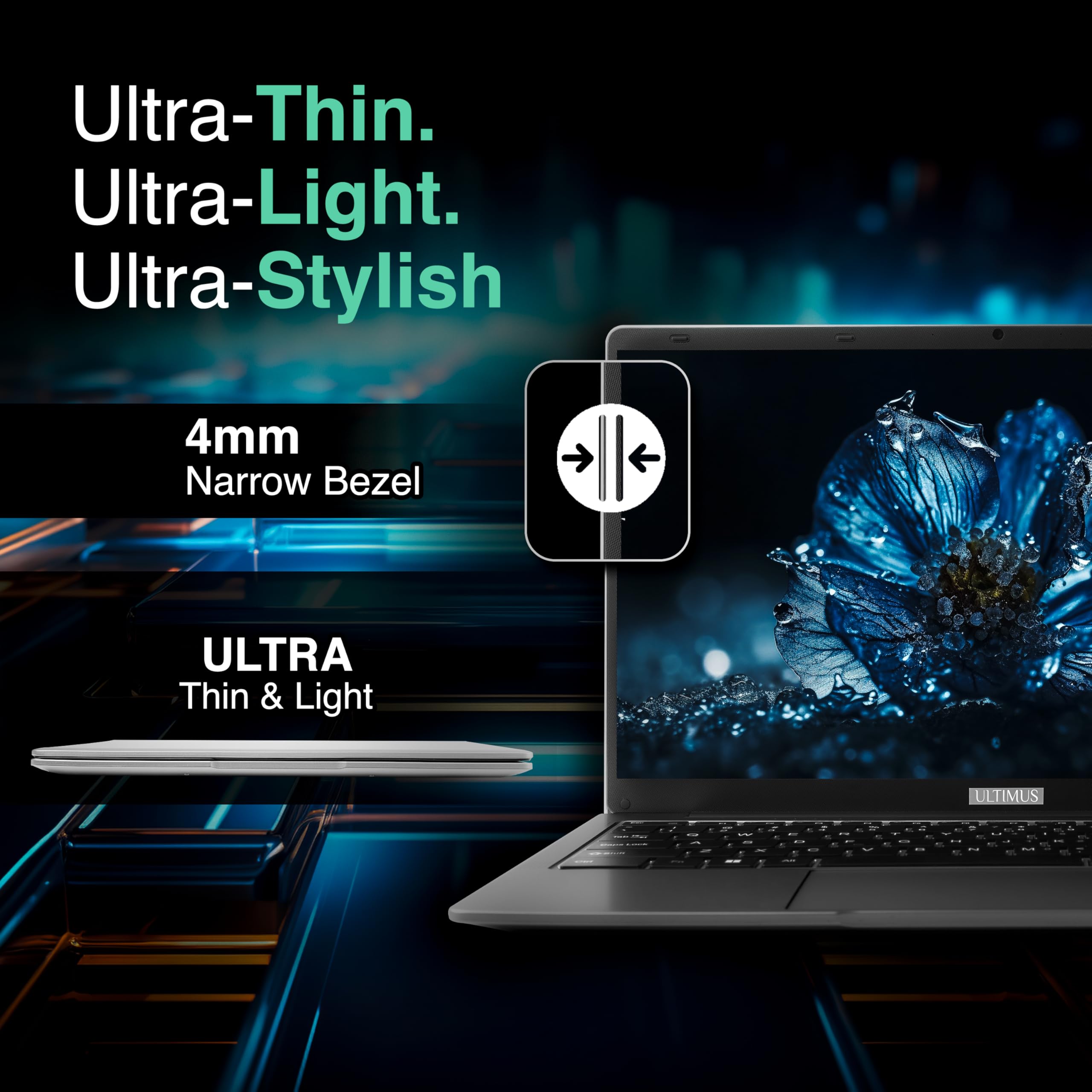 Ultimus APEX Pro Intel Pentium Quad Core Laptop 4GB RAM 128GB eMMC SSD Expandable~512GB Ultra Thin Bezel 180° Hinge 2.0x1 3.0x1 USB HDMI SD Card Slot Dual Speaker Win11 Home Space Gray 1.2Kg
