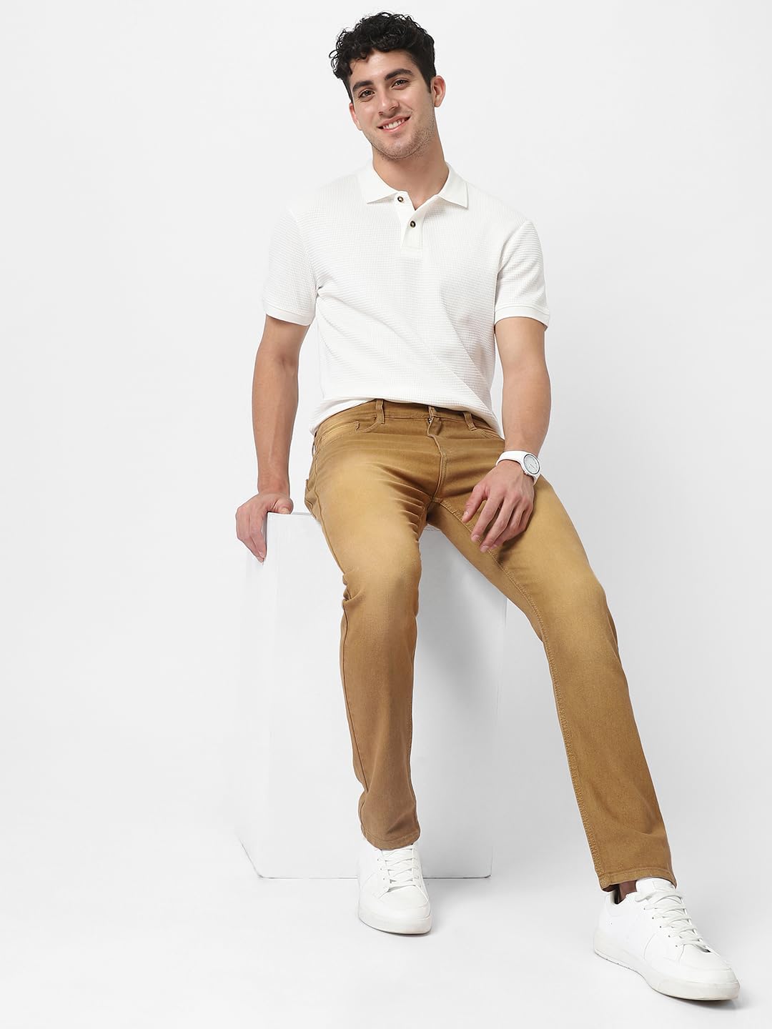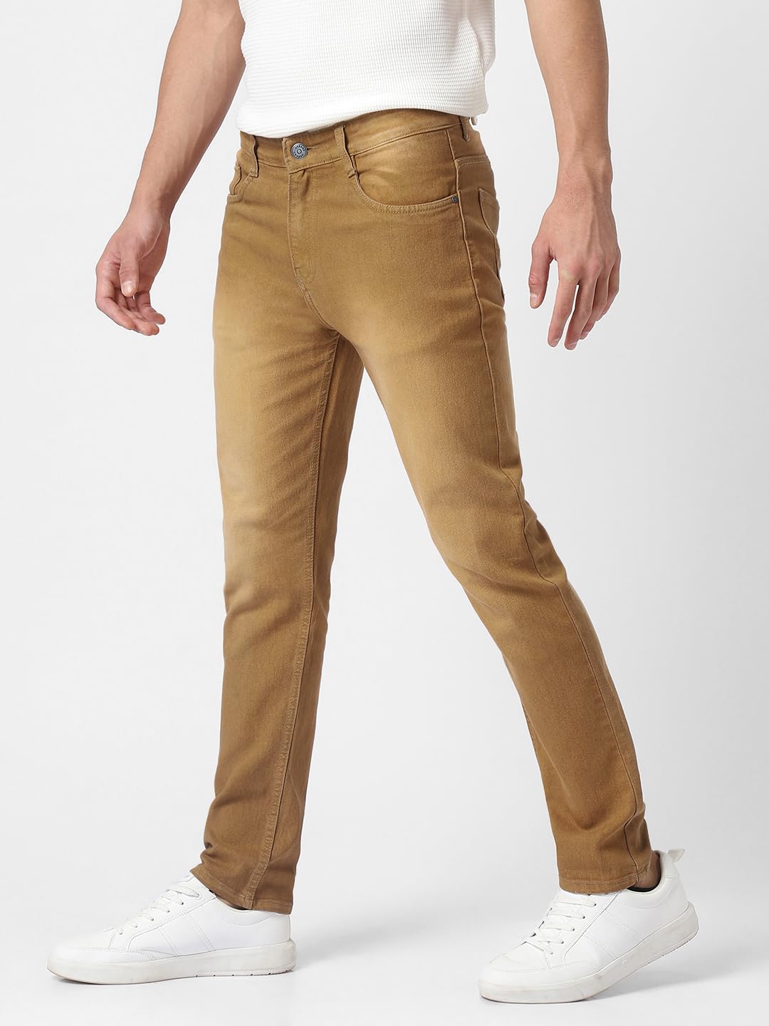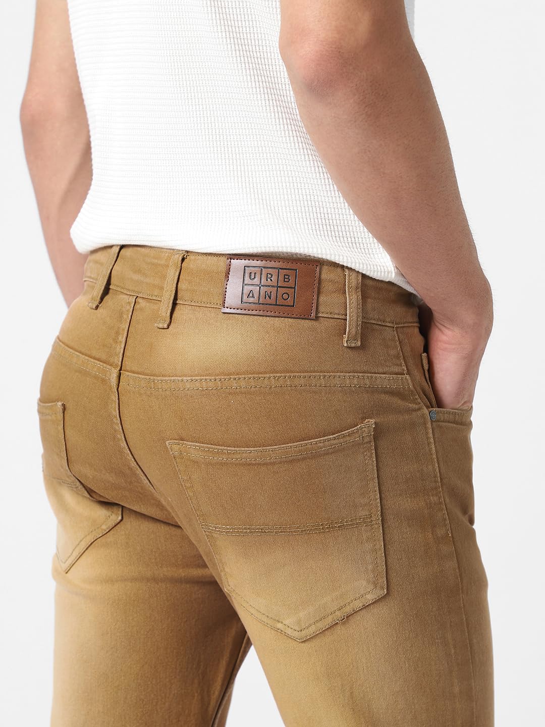 Urbano Fashion Men's Khaki Slim Fit Washed Jeans Stretchable (aveps700spr-khaki-34)