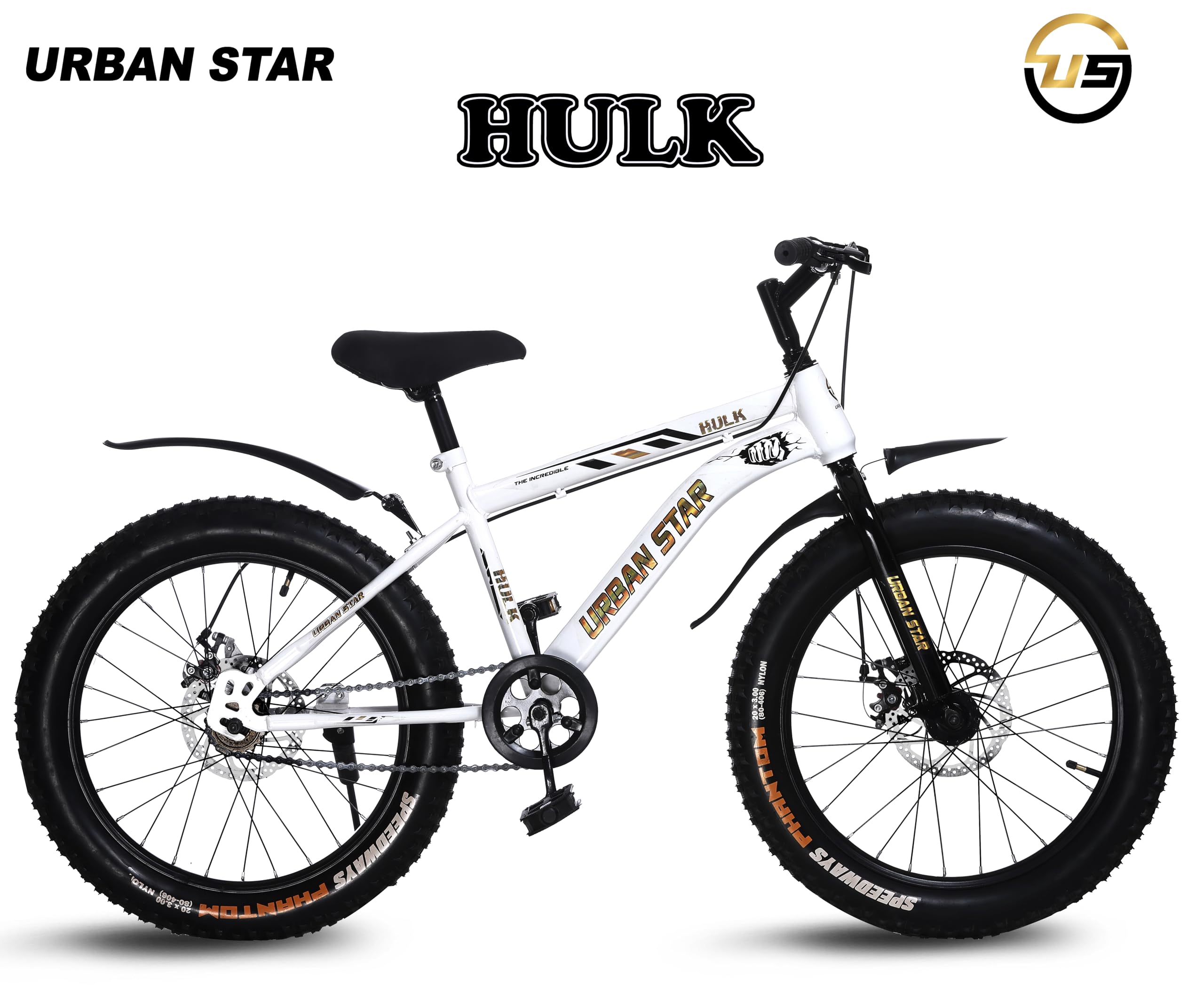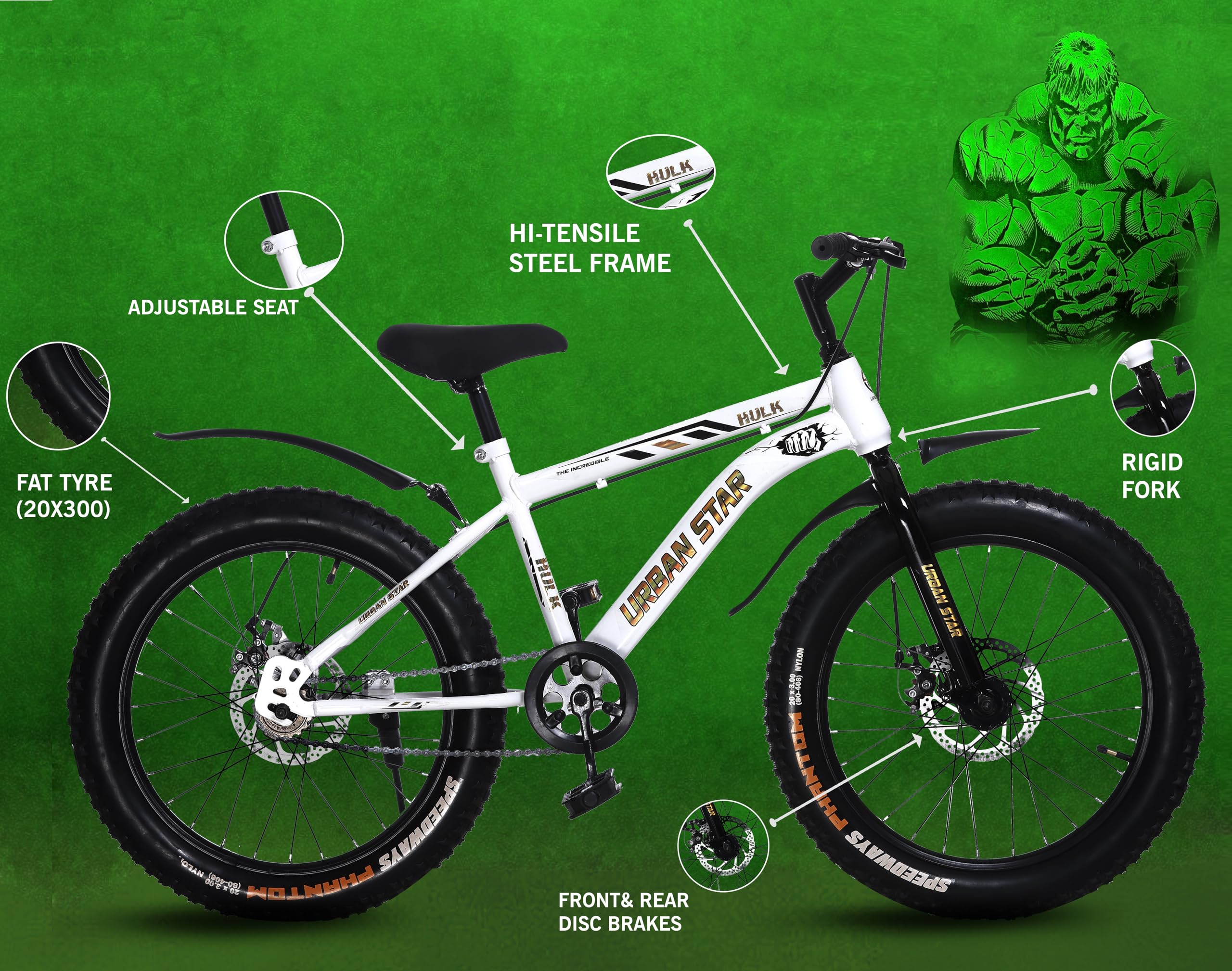 URBANSTAR Hulk | 20T BMX | Double DISC | Fat Tyres Semi Assembled | 20 T Fat Tyre Cycle (Single Speed, White)