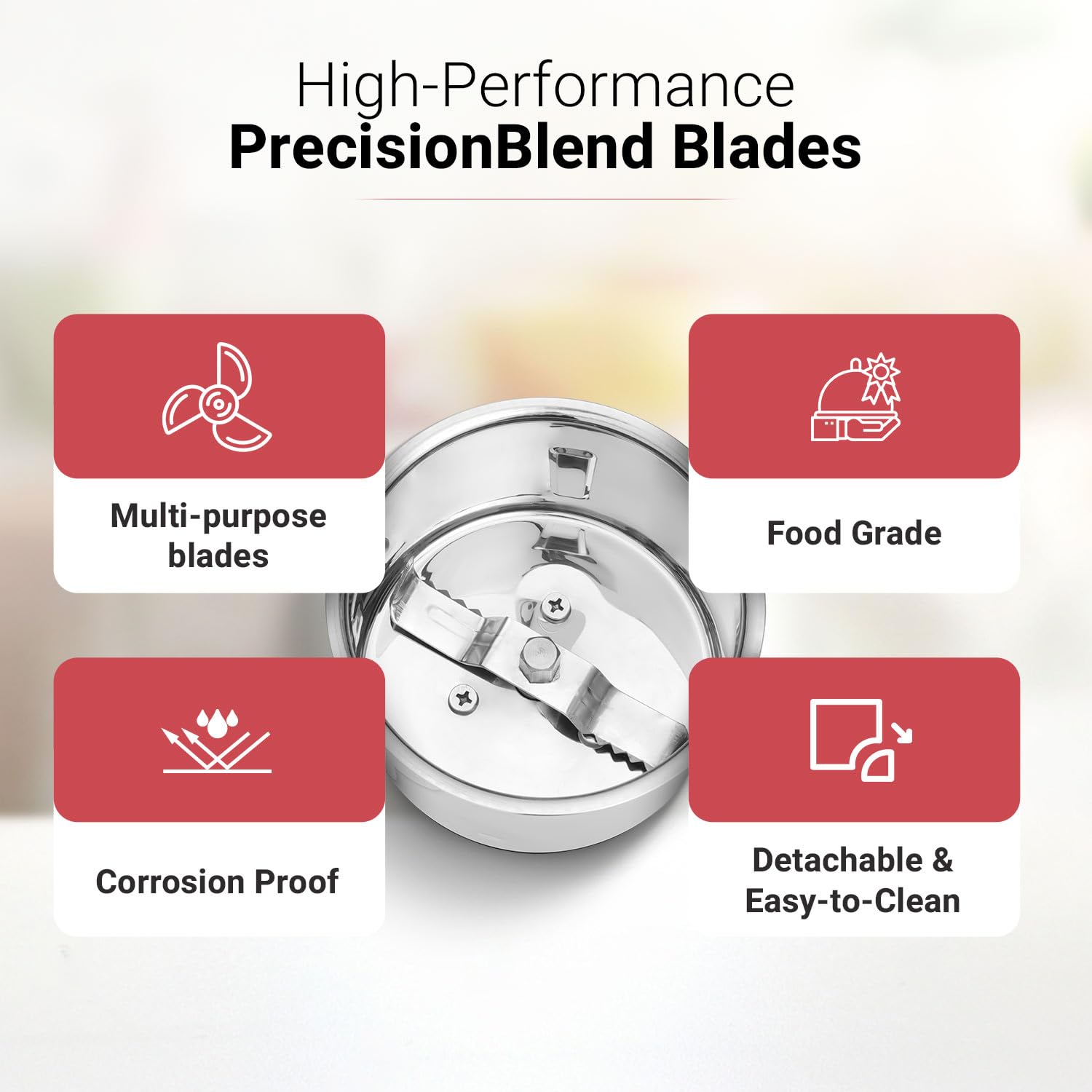 V-Guard Brillio 750 Watt Juicer Mixer Grinder, 3 Year Motor Coverage by V-Guard, 4 Jars(Chutney, Dry, Wet & Juicer), Sturdy Juicer Jar With Quadraflow Design, Precisionblend Ss Blades, Mars Red