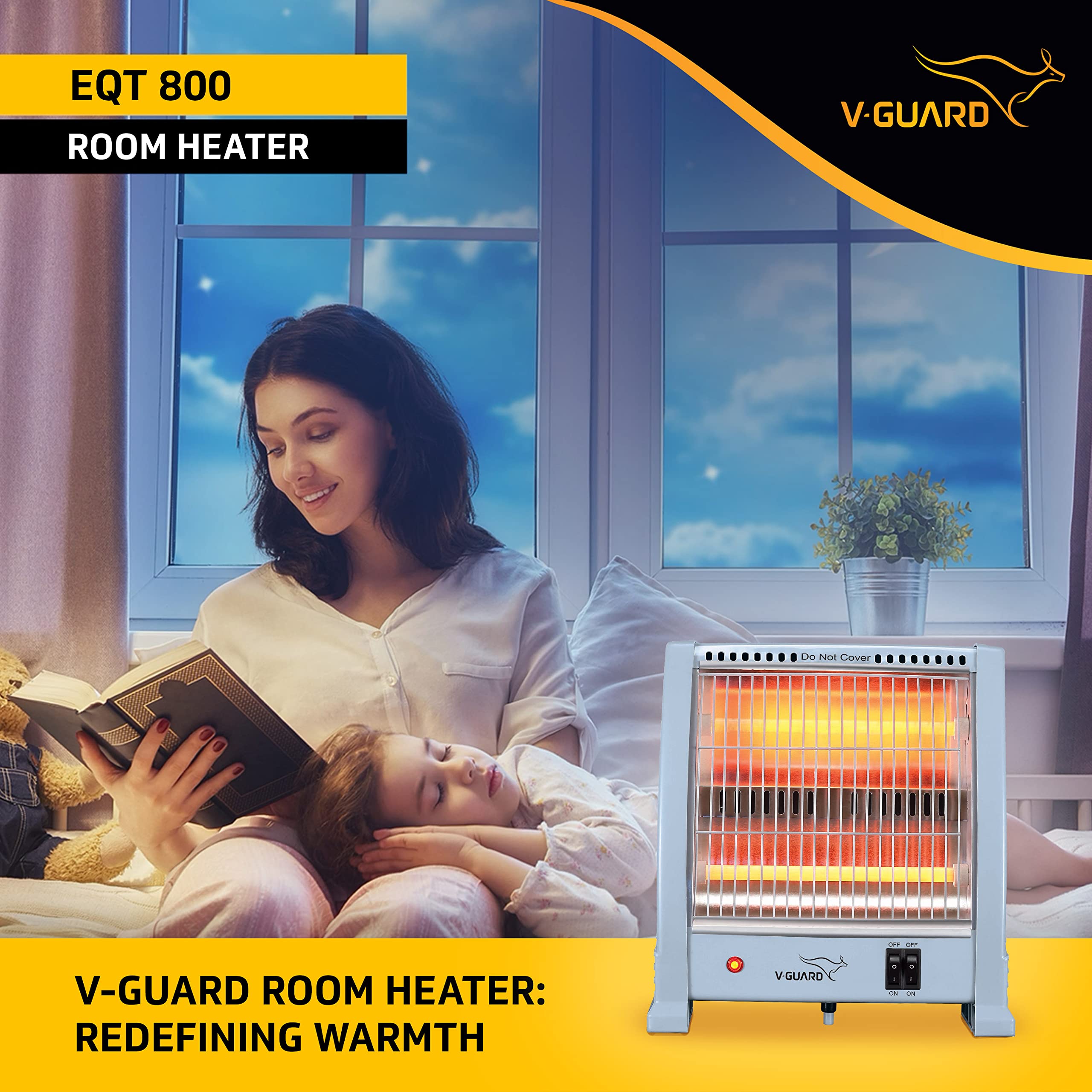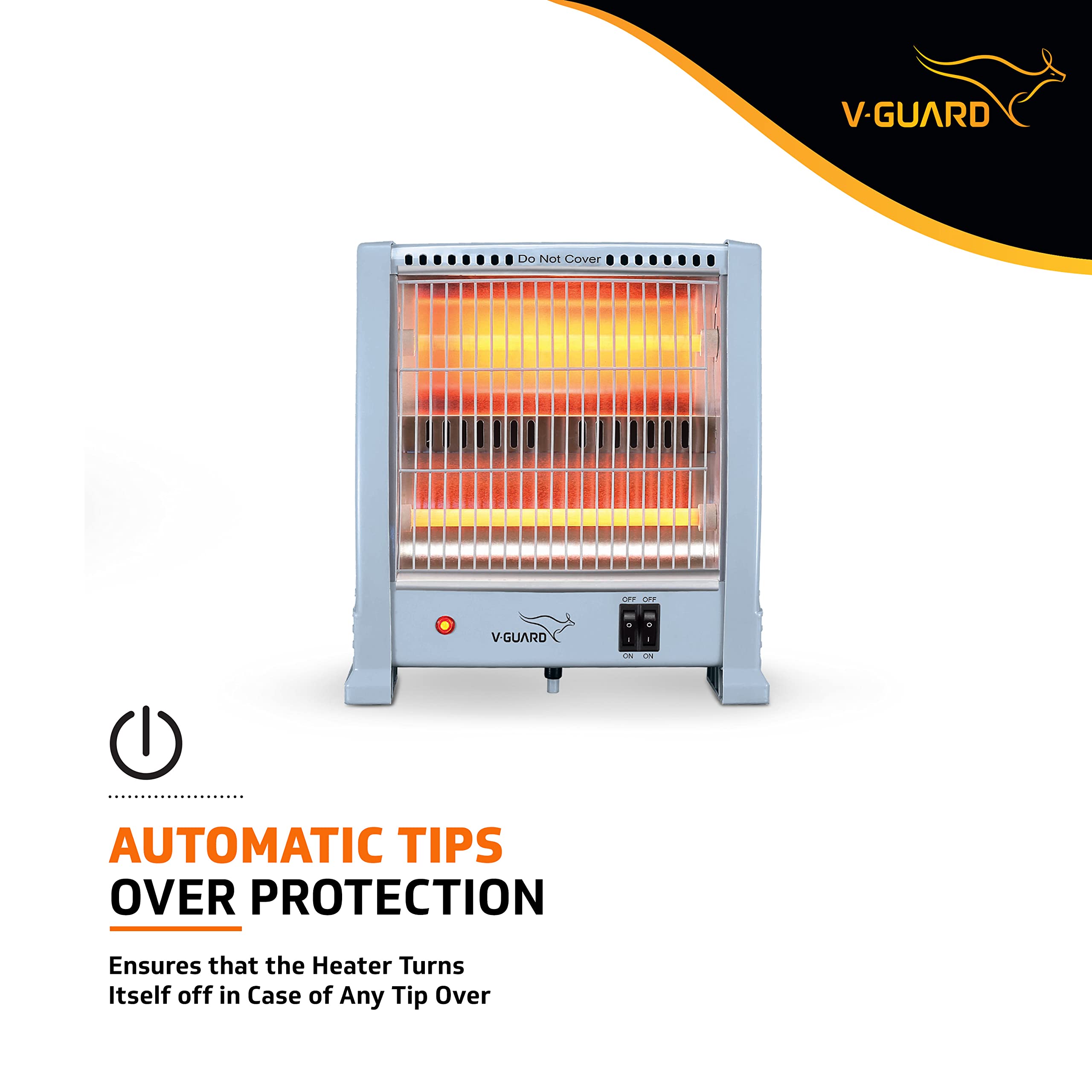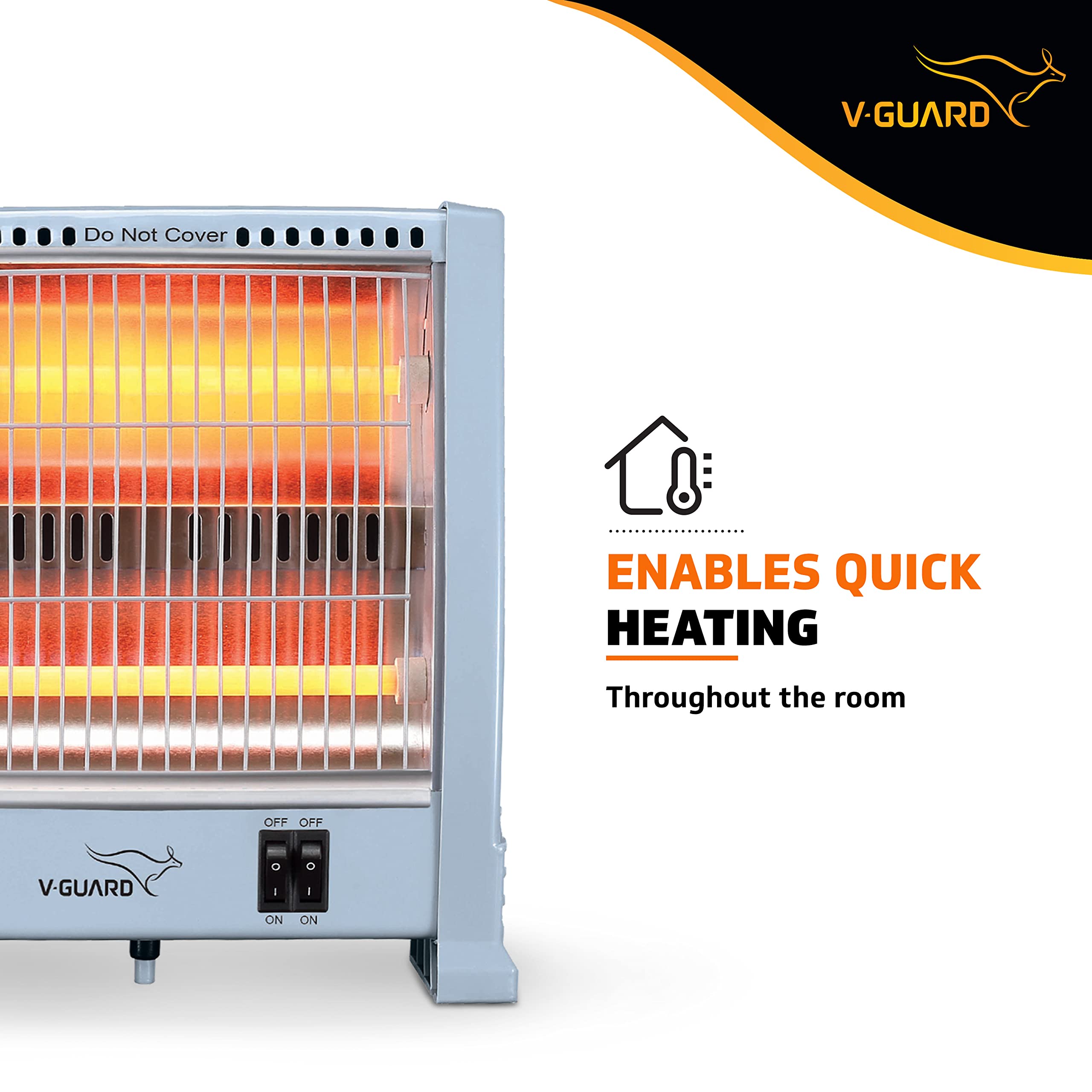 V-Guard EQT 400 watt-800 watt Quartz Room Heater | Noise-free Performance | Enables Quick Heating | 1 Year Warranty, Grey
