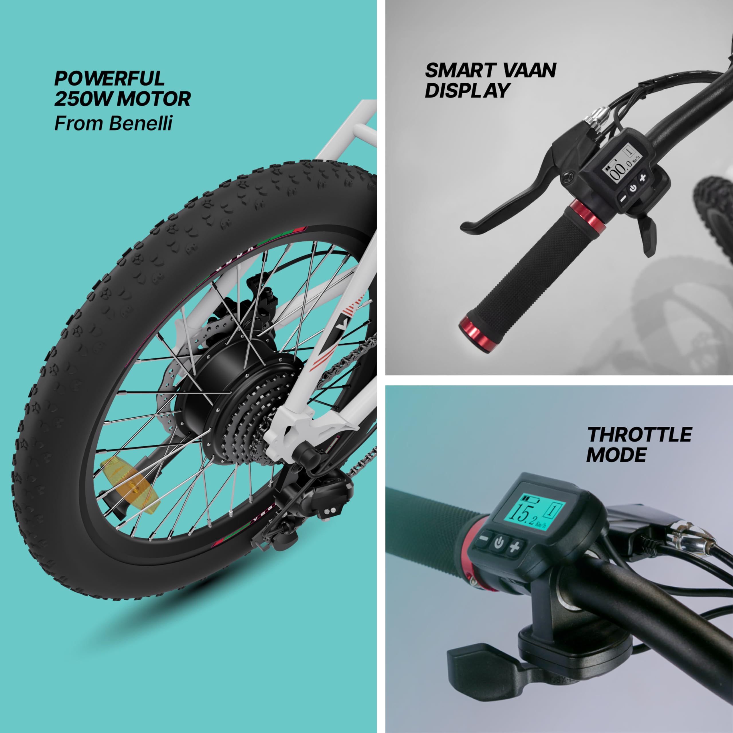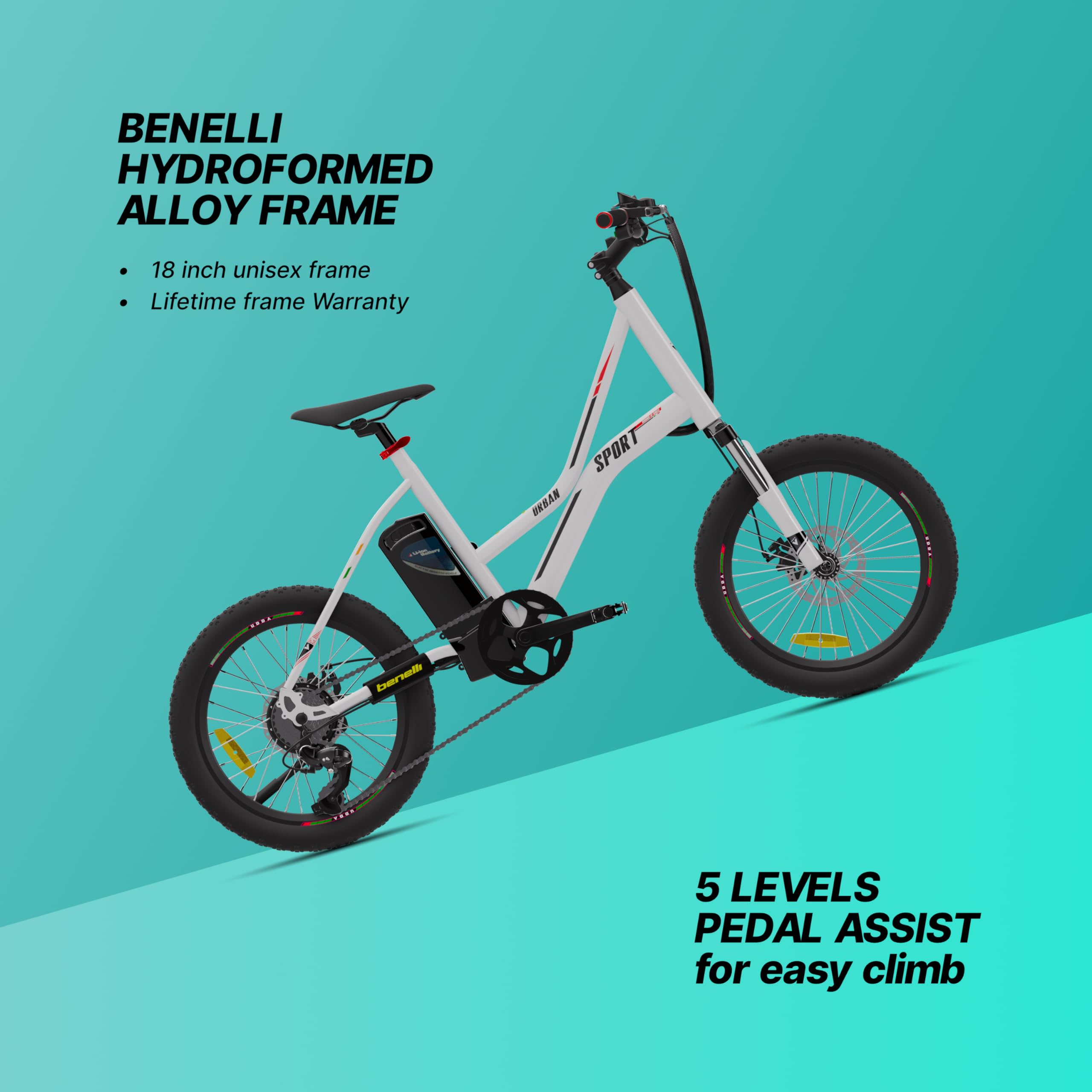 vaan Urbansport Electric Bicycle with Display, Benelli Hydroformed Alloy Frame and 5 Levels Pedal Assist for Easy Climb (White, E-Cycle Weight- 25kg)