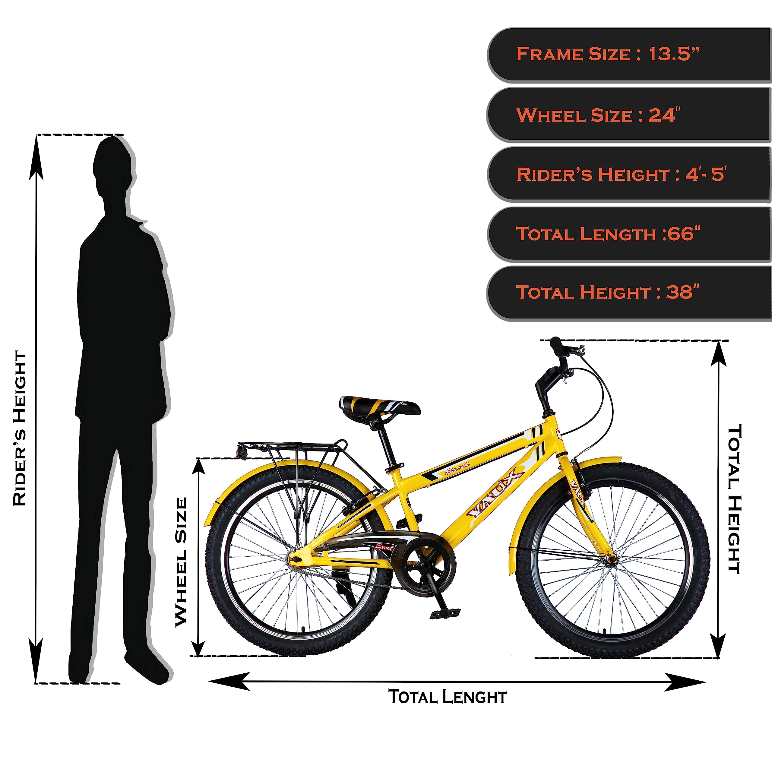 Brand: VauxColor: YellowFeatures: QUALITY: Vaux Excel is a 24 inch cycle for Boys & Girls made up of 13.5 inches... Read more