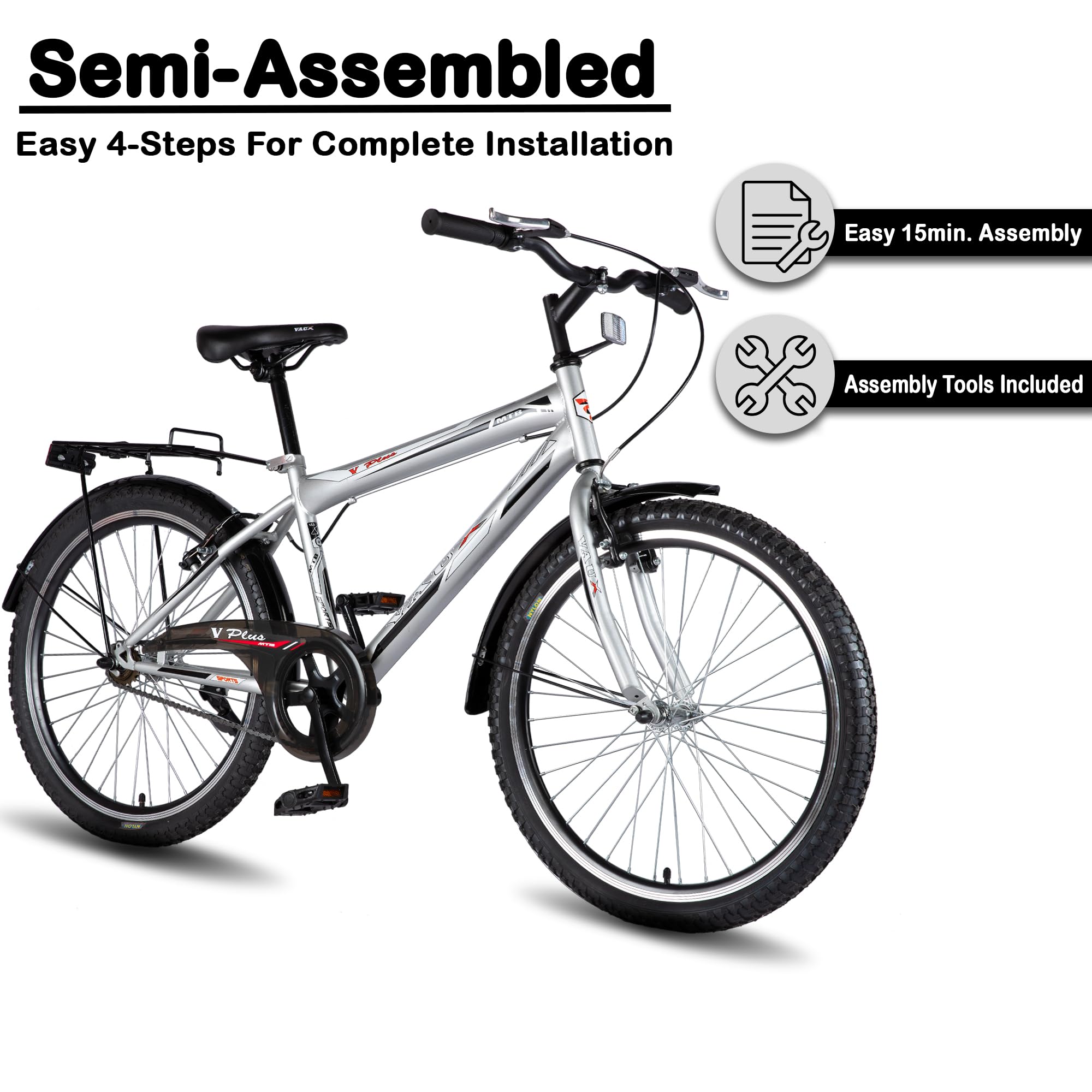 Vaux Plus Cycle for Boys 24T with Carrier, 24inch Cycle for Kids with Steel Frame, Rigid Fork, Alloy Rims,24x2.125inch Ralson Tyre, Bicycle for Kids 10 to 15 Years (Silver)