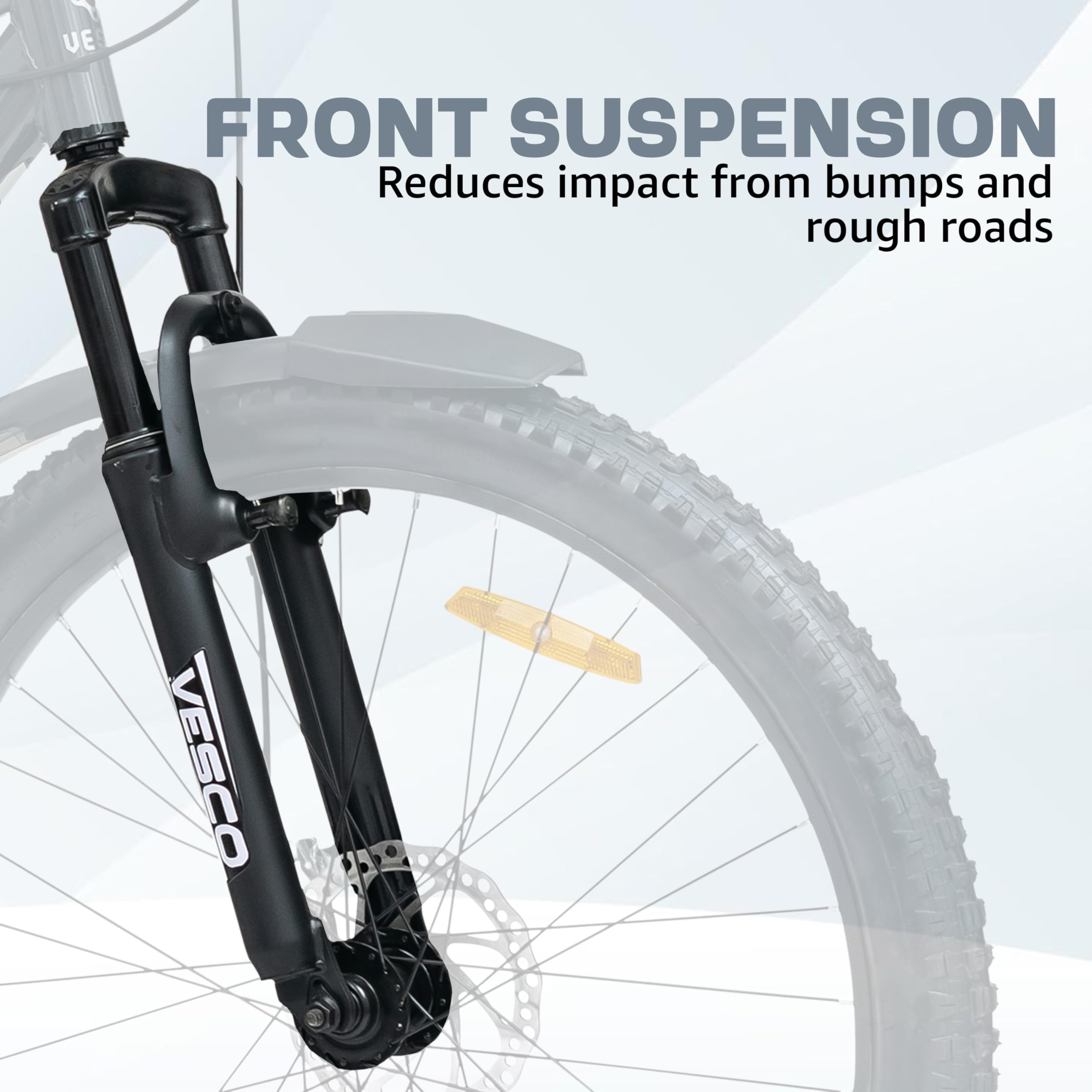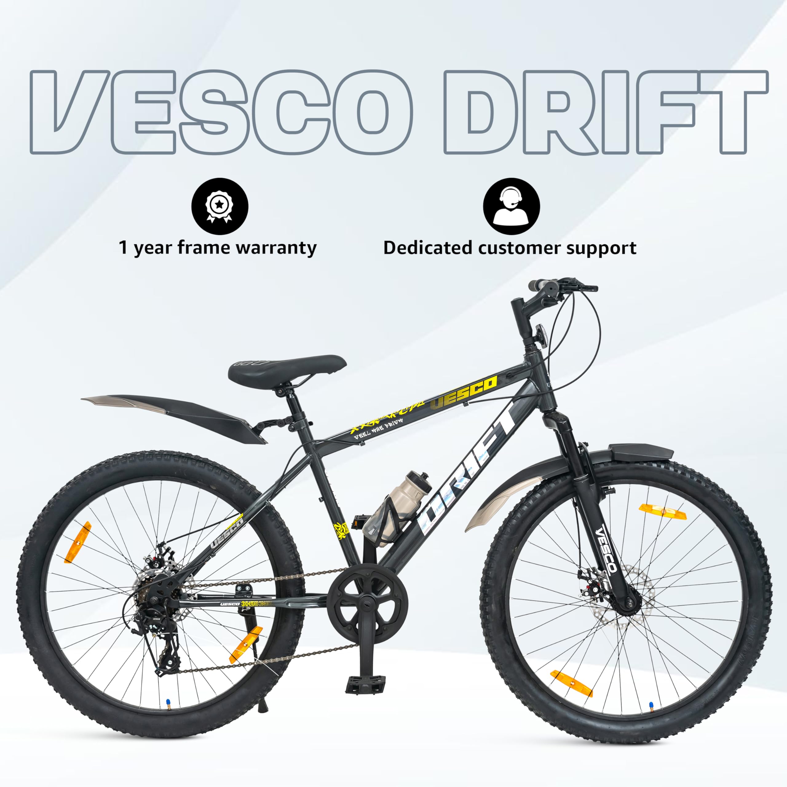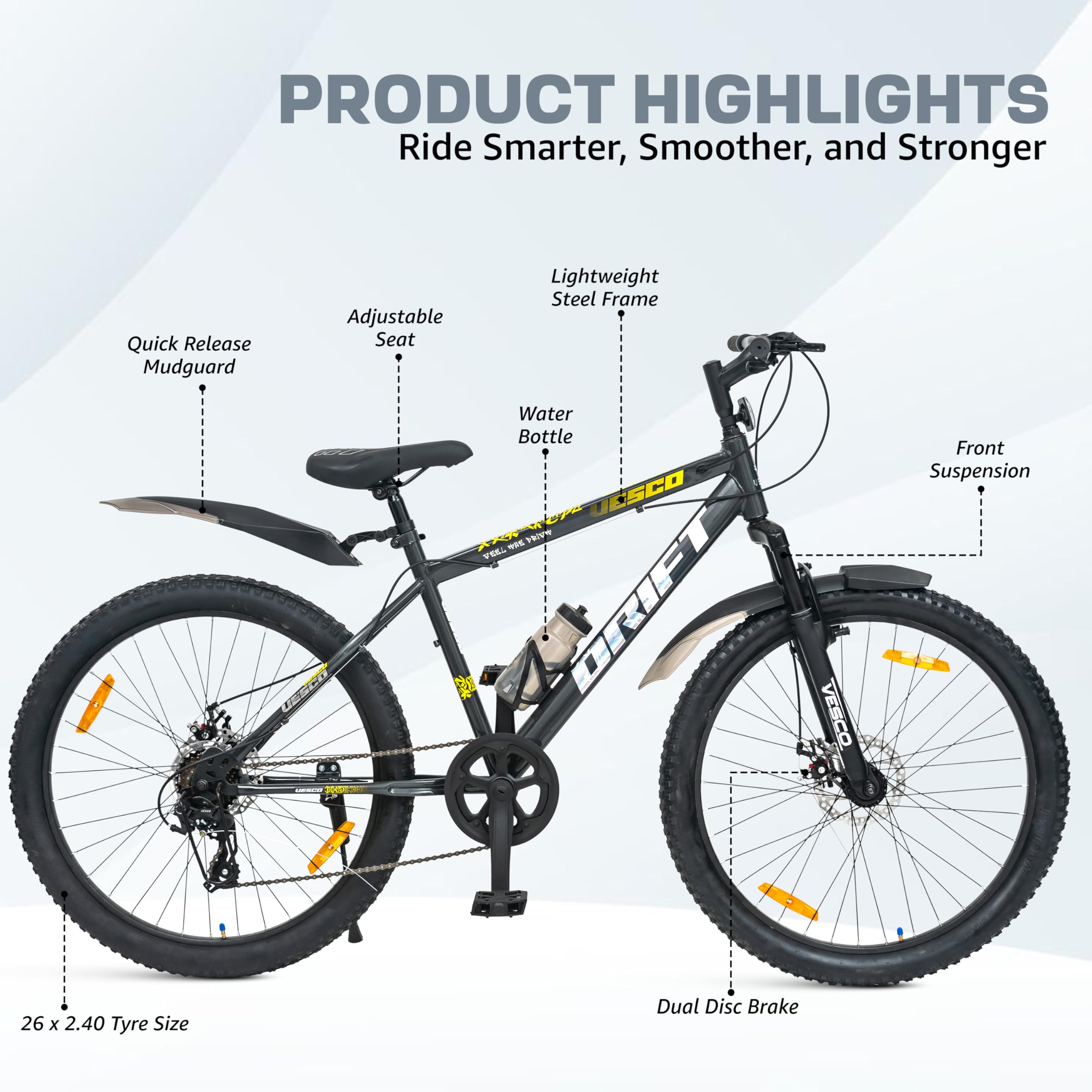 VESCO Drift 26T Cycle 7 Speed Gear | Cycle for Men/Boys 15+ Age | 18 inch Frame | Mountain Bicycle with Front Suspension & Dual Disc Brakes | Ideal for Men/Women (Charcoal Grey)