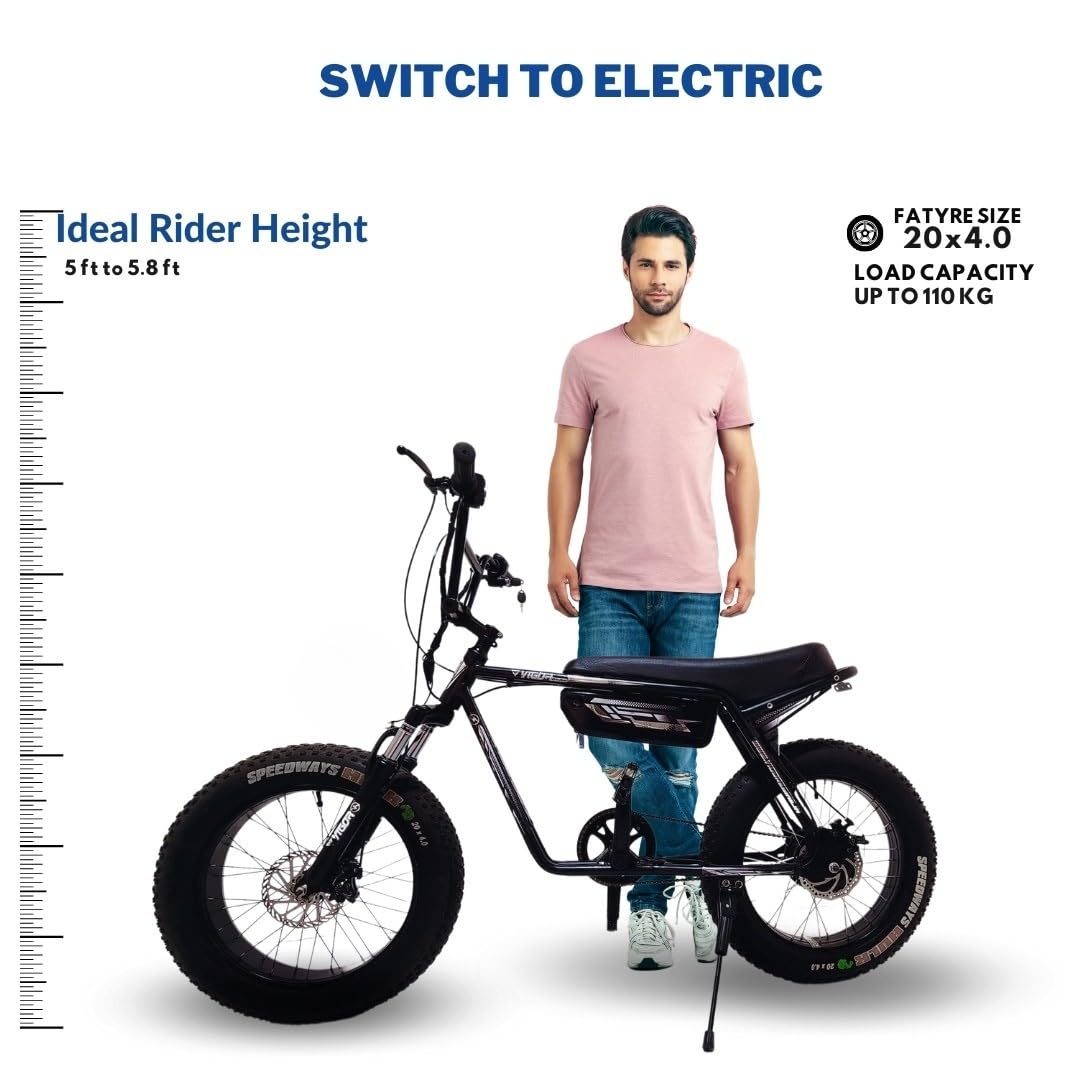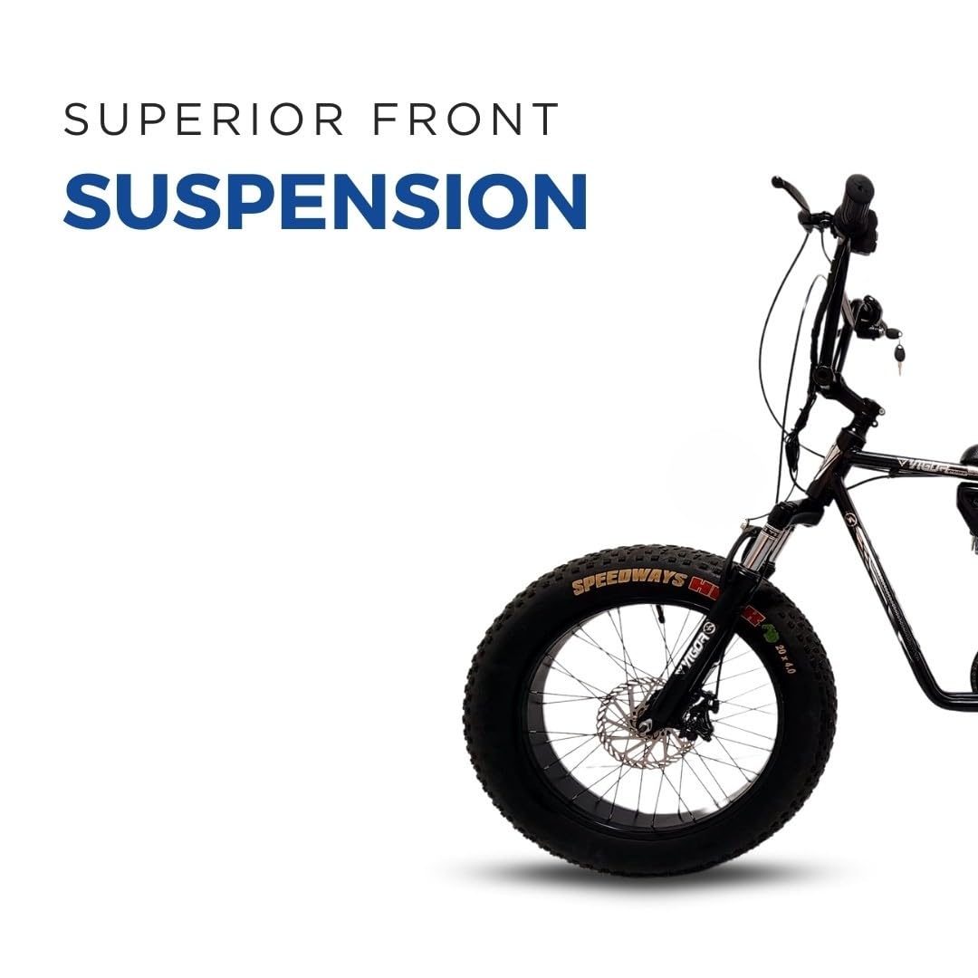 VIGOREBIKE Men ZE Electric Cycle with Dual Disc Brakes, 350w Hub Motor, 5.8Ah Li-Ion Battery, 95% Pre-Assembled with Charger, Black Color,Fat Tyre Cycle 20 x 400 Inches, 20 Inch
