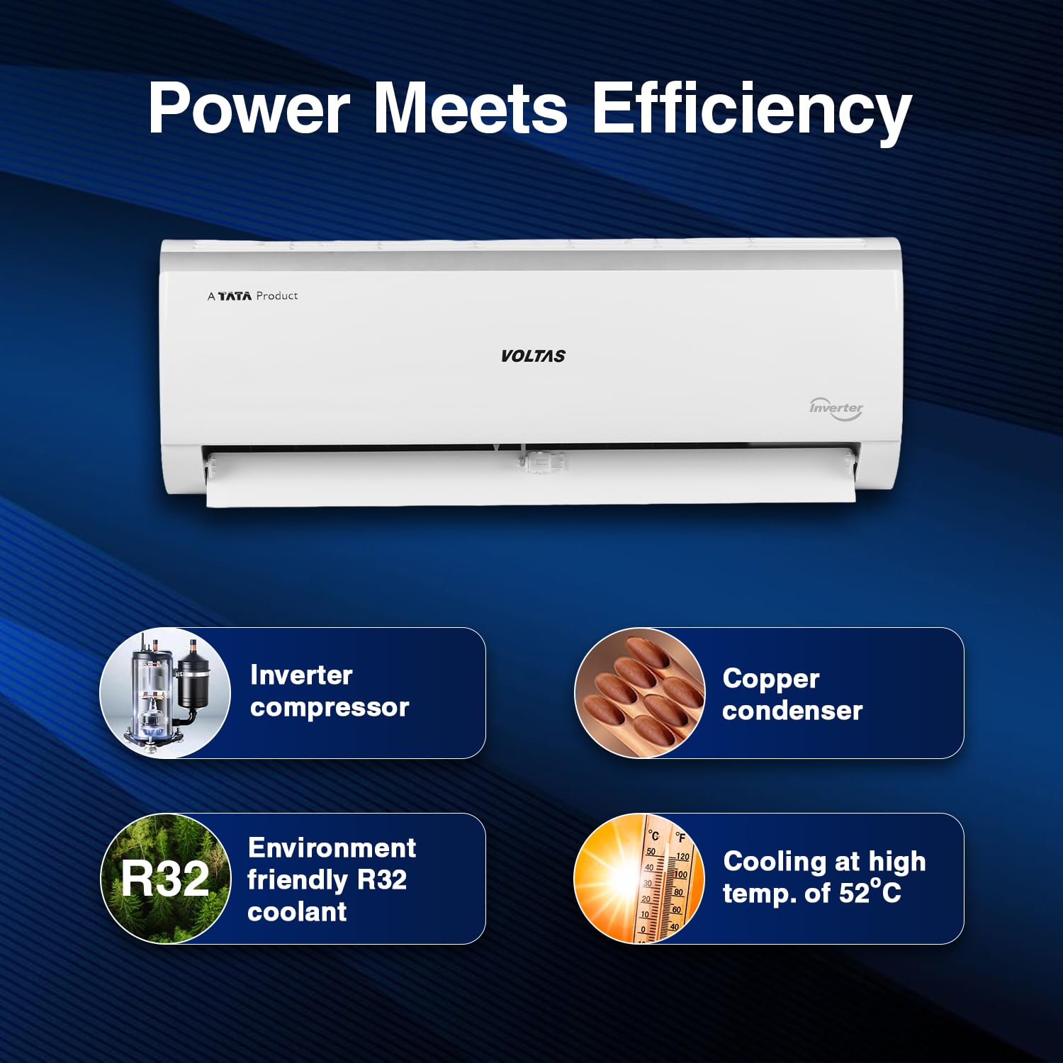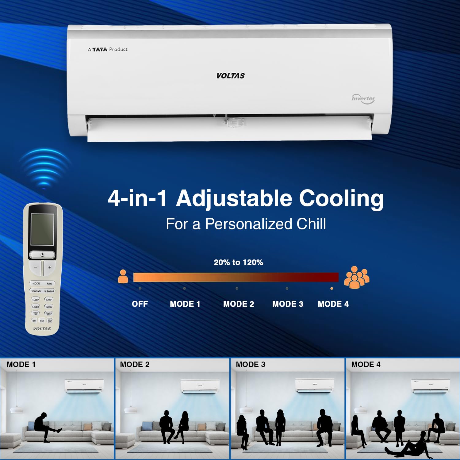 Voltas 1 ton 3 Star Inverter Split AC (Copper, 4-in-1 Adjustable Mode, Anti-dust Filter, 2024 Model, 123V CAE, White)