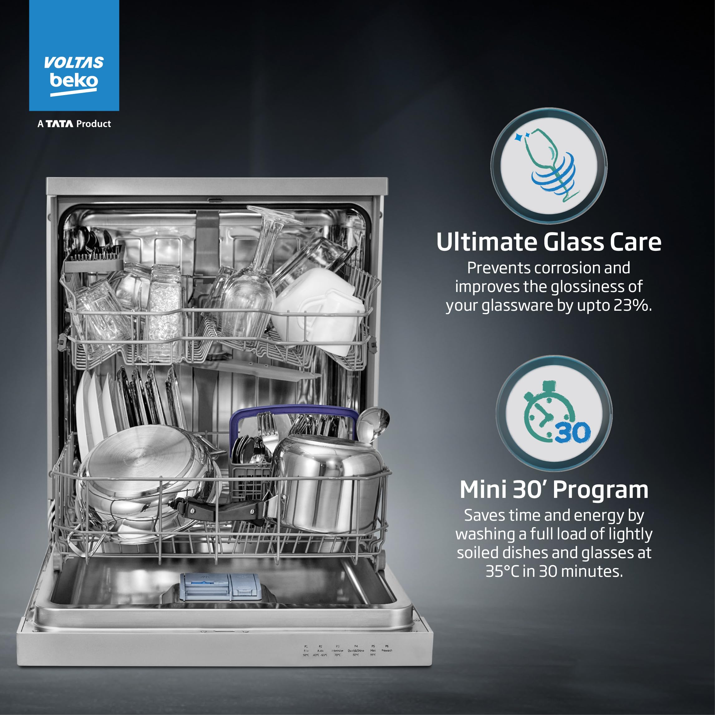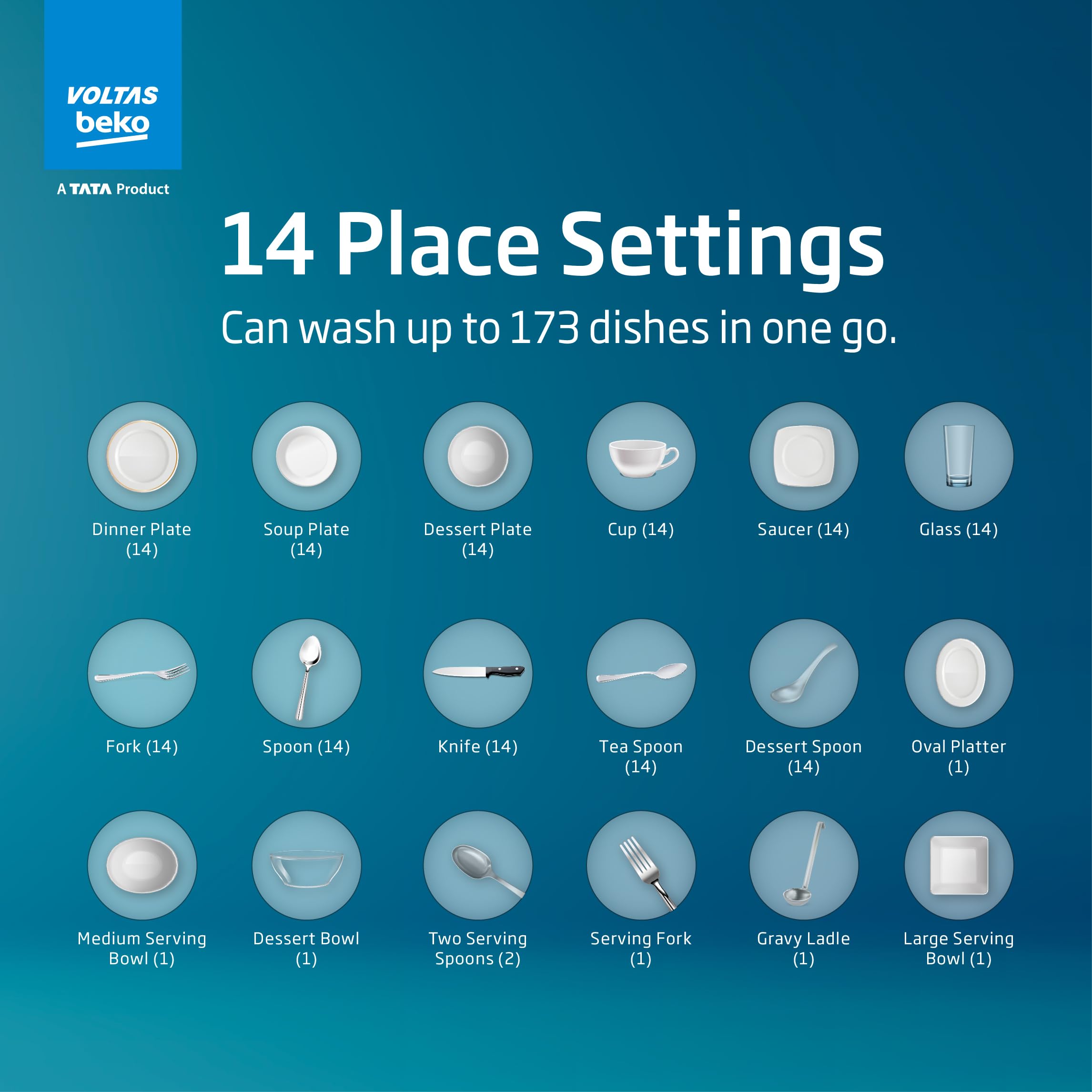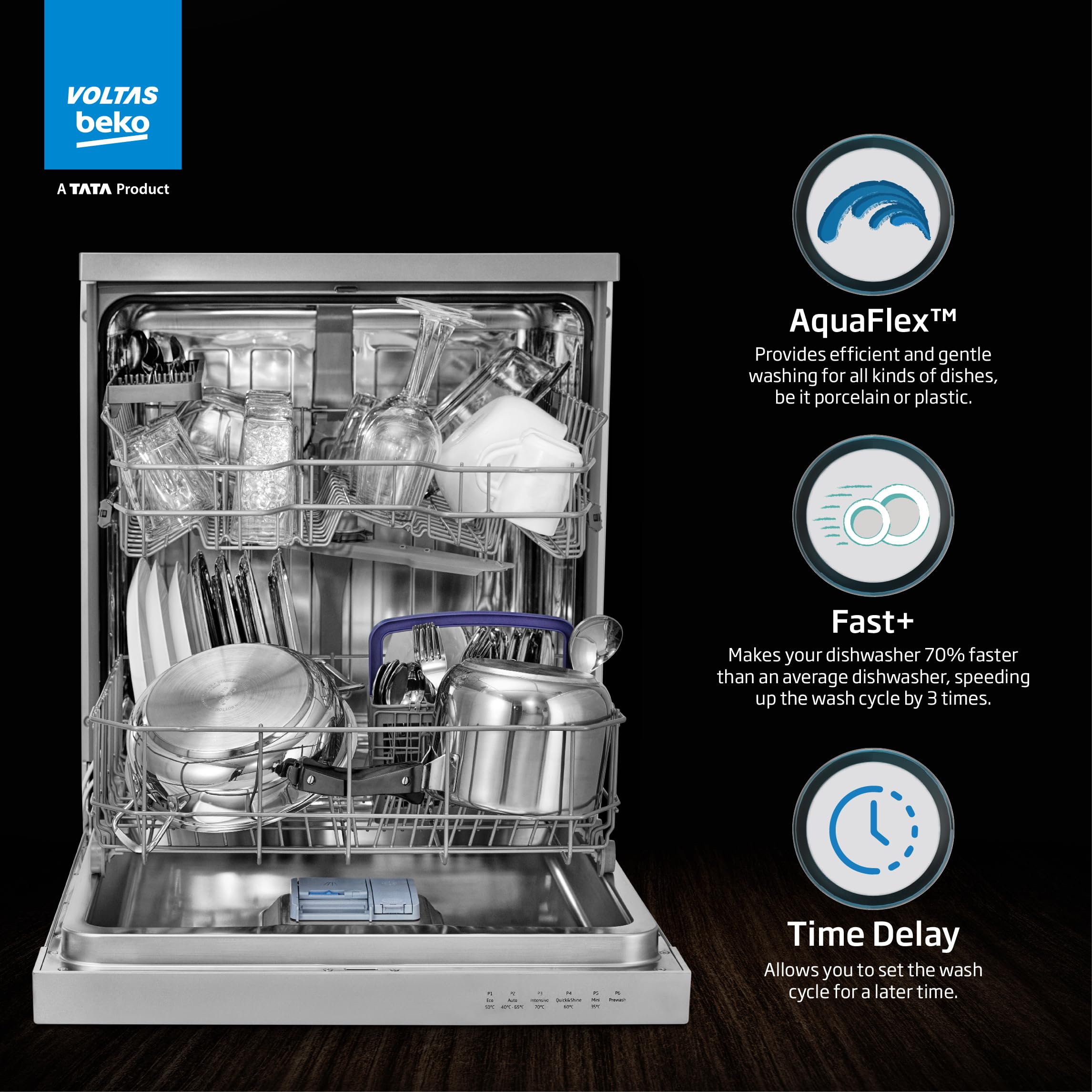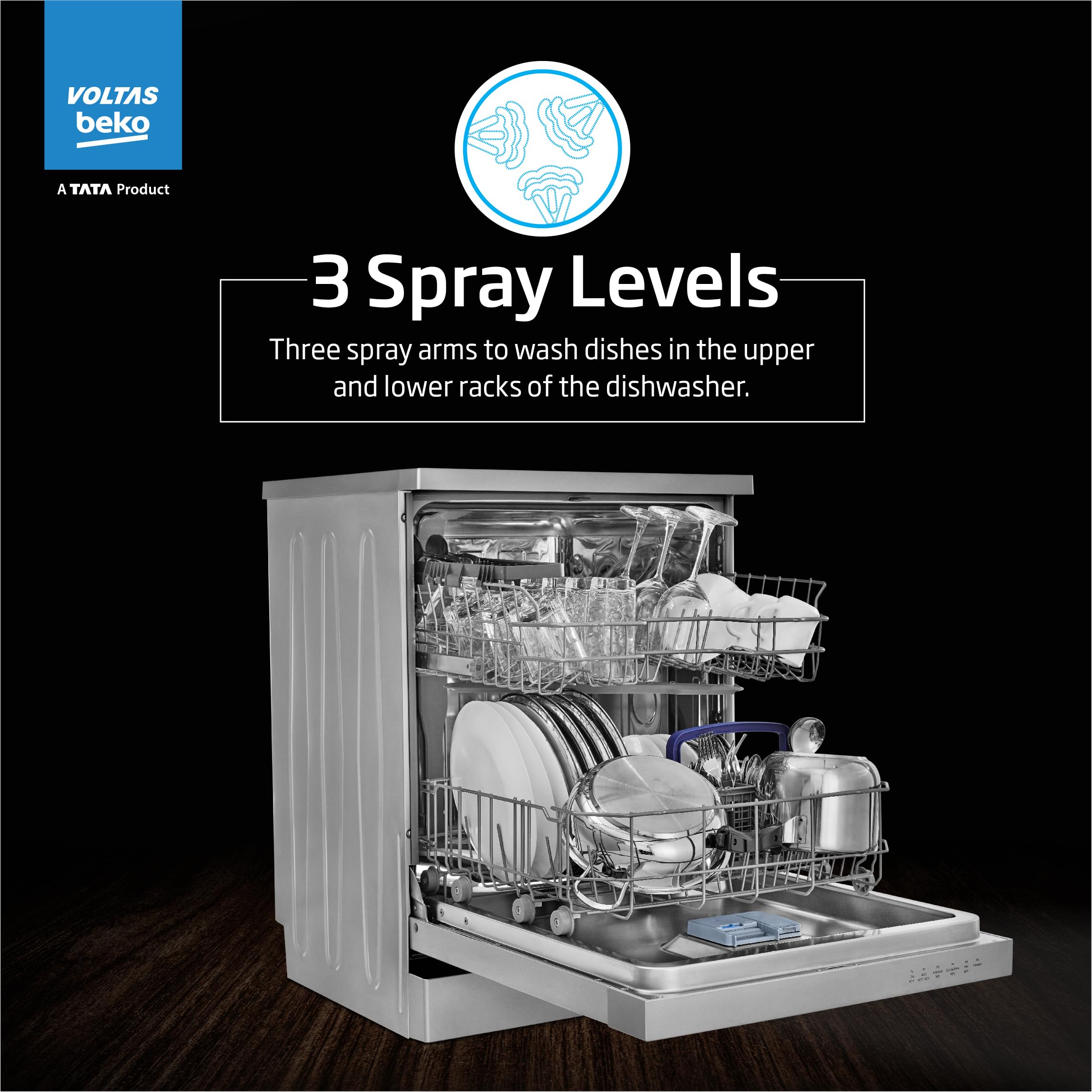 Voltas Beko 14 Place Setting Dishwasher, AquaFlex, AquaIntense (DF14S2,Silver), Free 1 Year Extended warranty