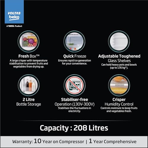Brand: Voltas BekoColor: 228 L-Bonita BlueFeatures: Direct Cool Refrigerator : Economical and stylish Capacity 228 ltrs : suitable for small... Read more