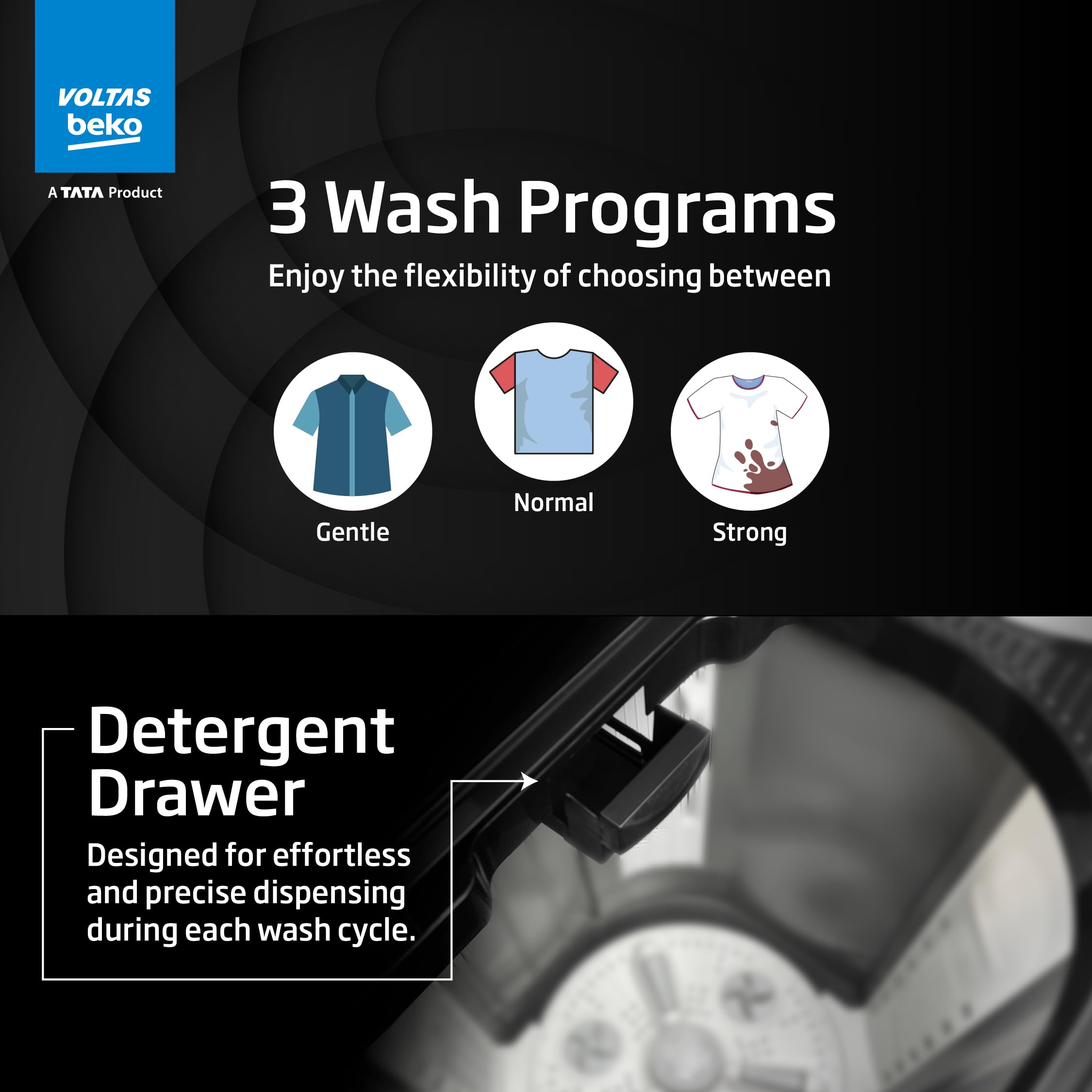 Brand: Voltas BekoColor: BlackFeatures: Semi-automatic washing machine with Double waterfall technology: Economical, Low water and energy consumption, involves manual effort;... Read more