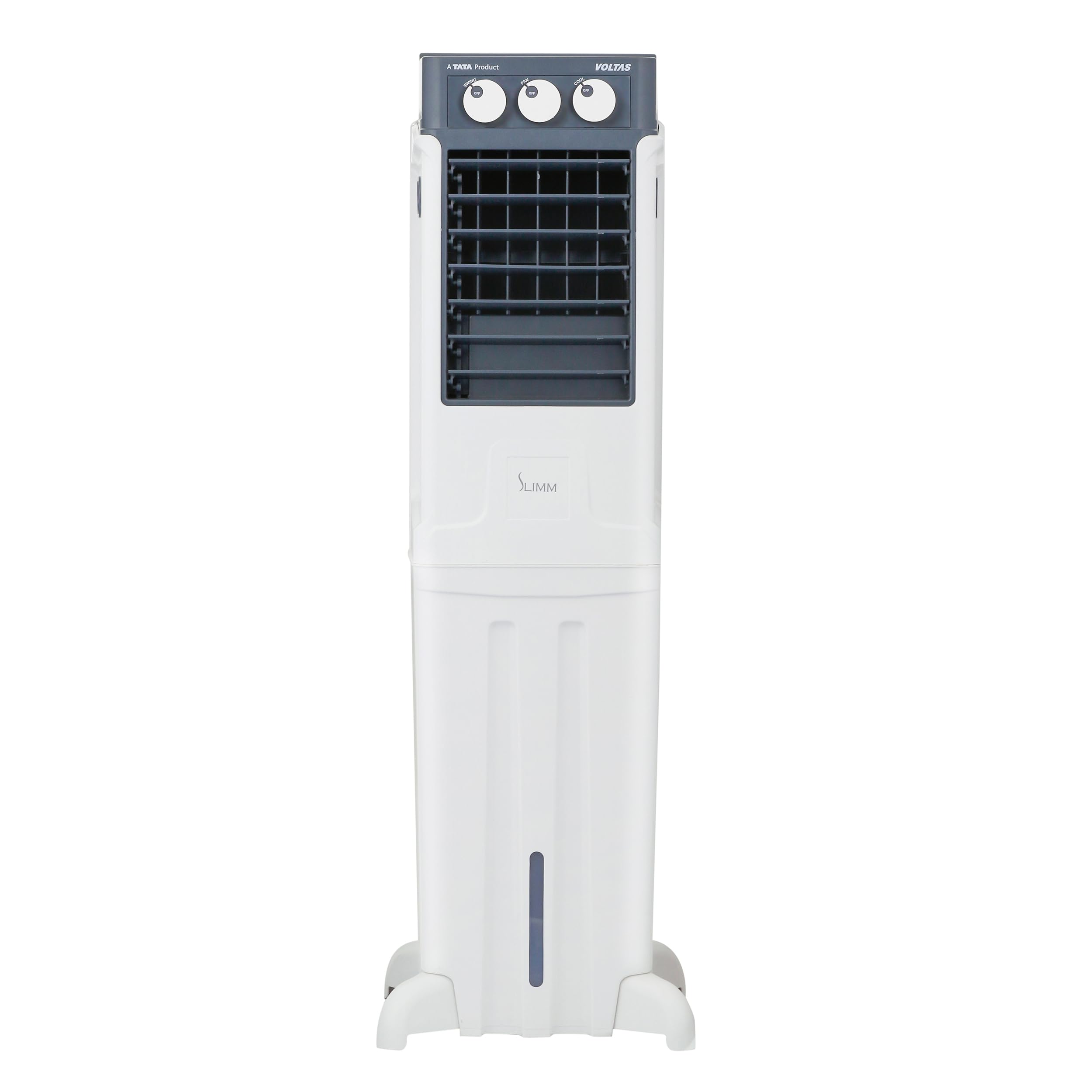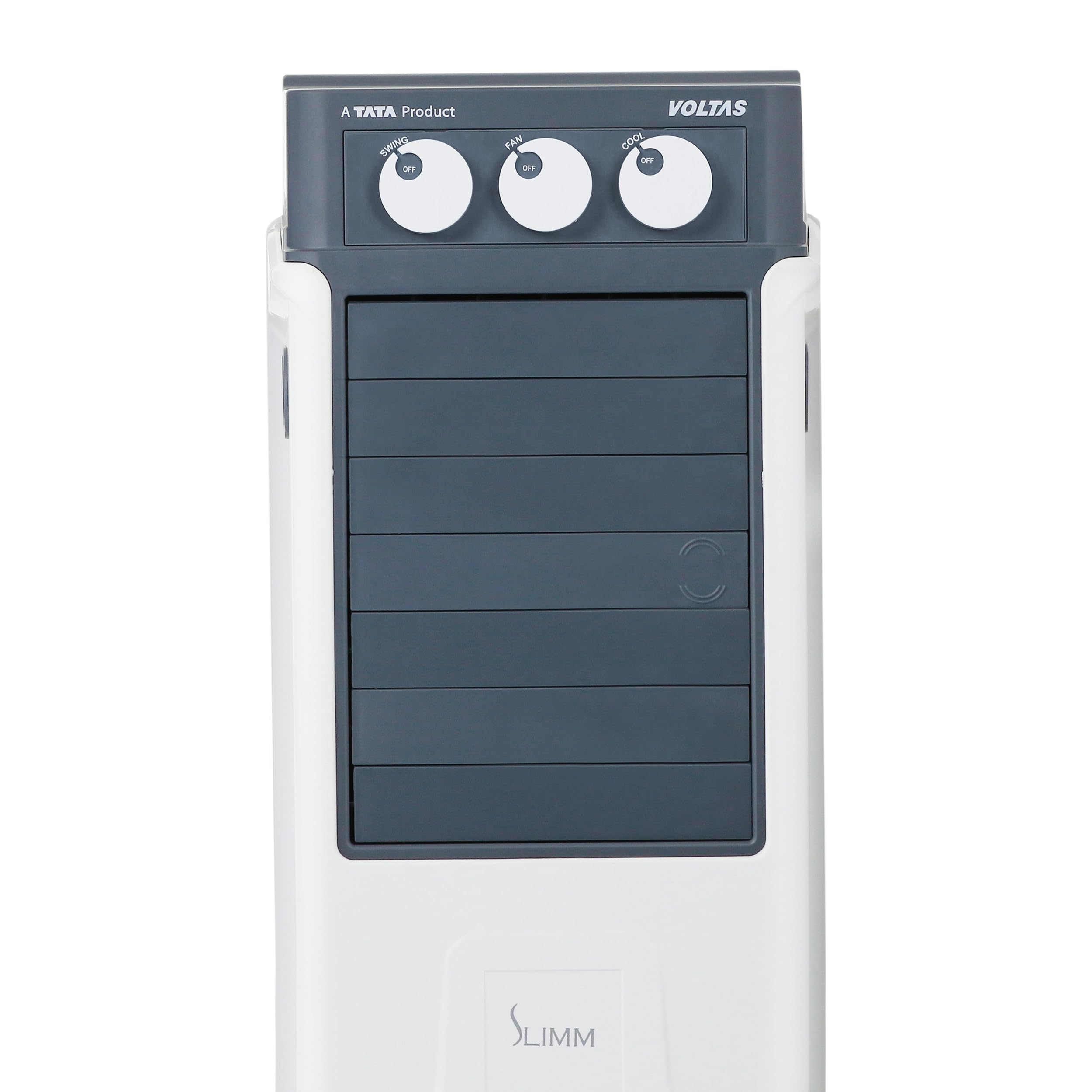 Voltas Slimm 35, Tower Air Cooler for home, Honey comb cooling pad with Ice Chamber, Mechanical Operation with Auto swing louvers, Freestanding 35 Litres, White