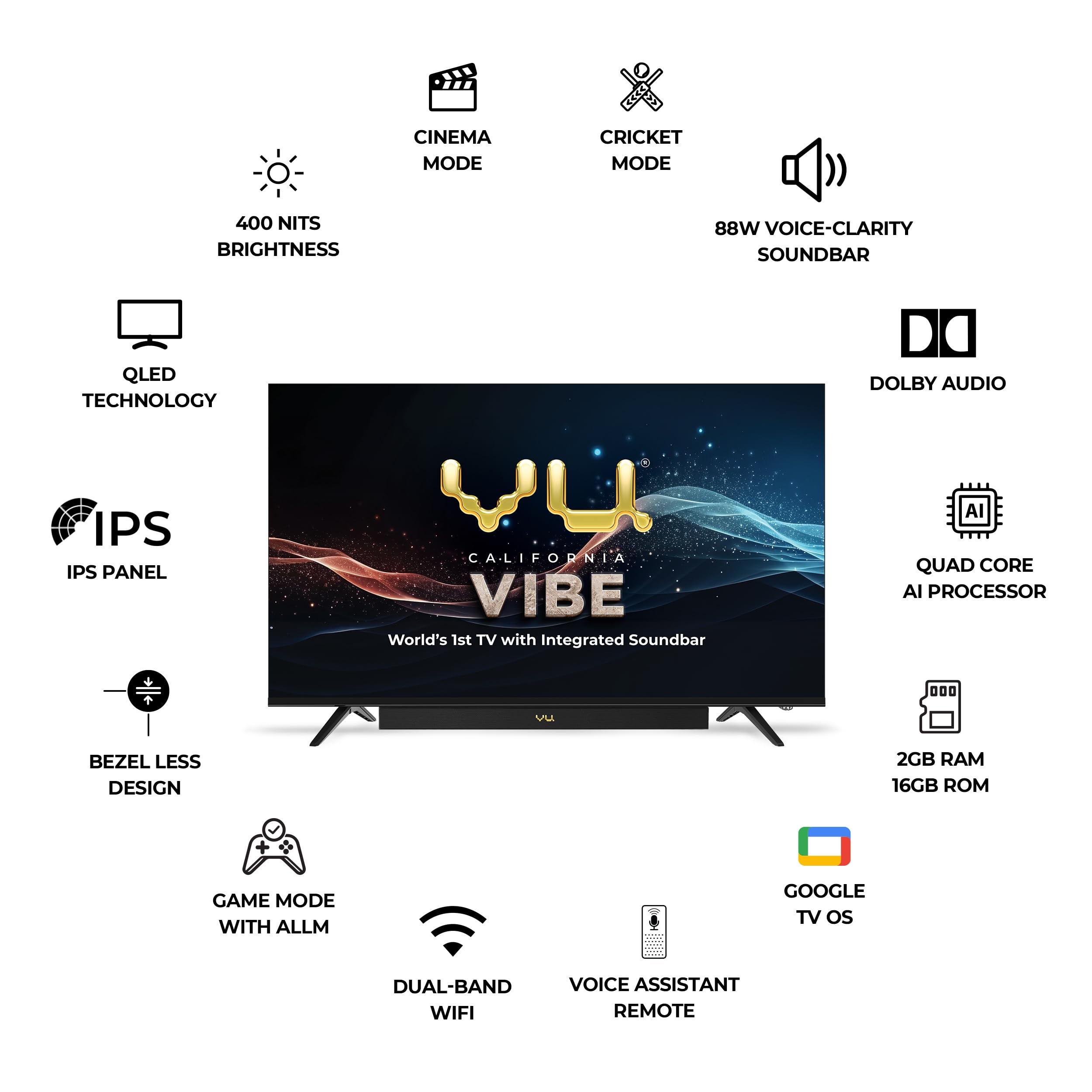 Vu 108cm (43 inches) Vibe Series QLED 4K Google TV 43VIBE24 (Black)