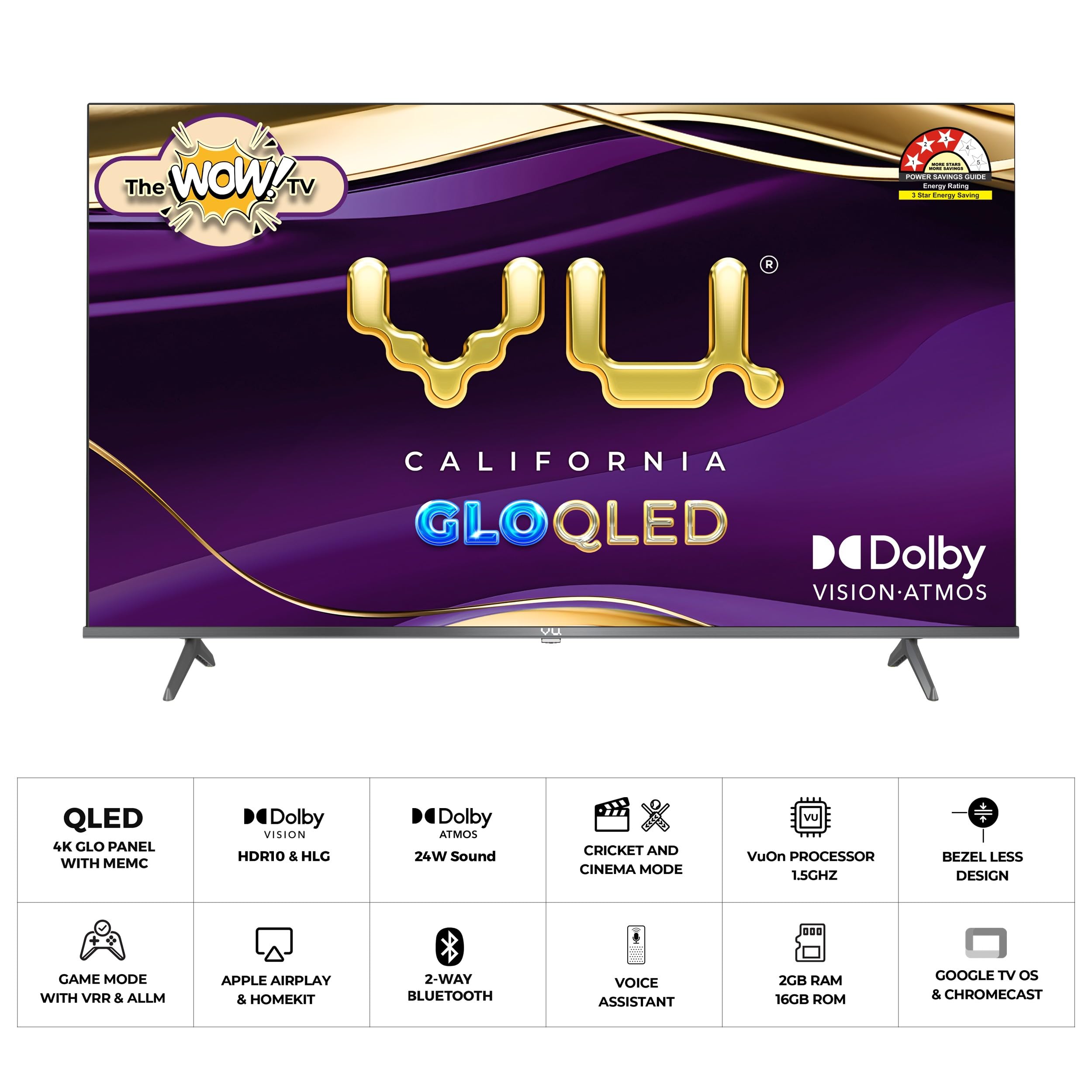 VU 164cm (65 inches) GloQLED Series 4K QLED Smart Google TV 65GLOQLED25