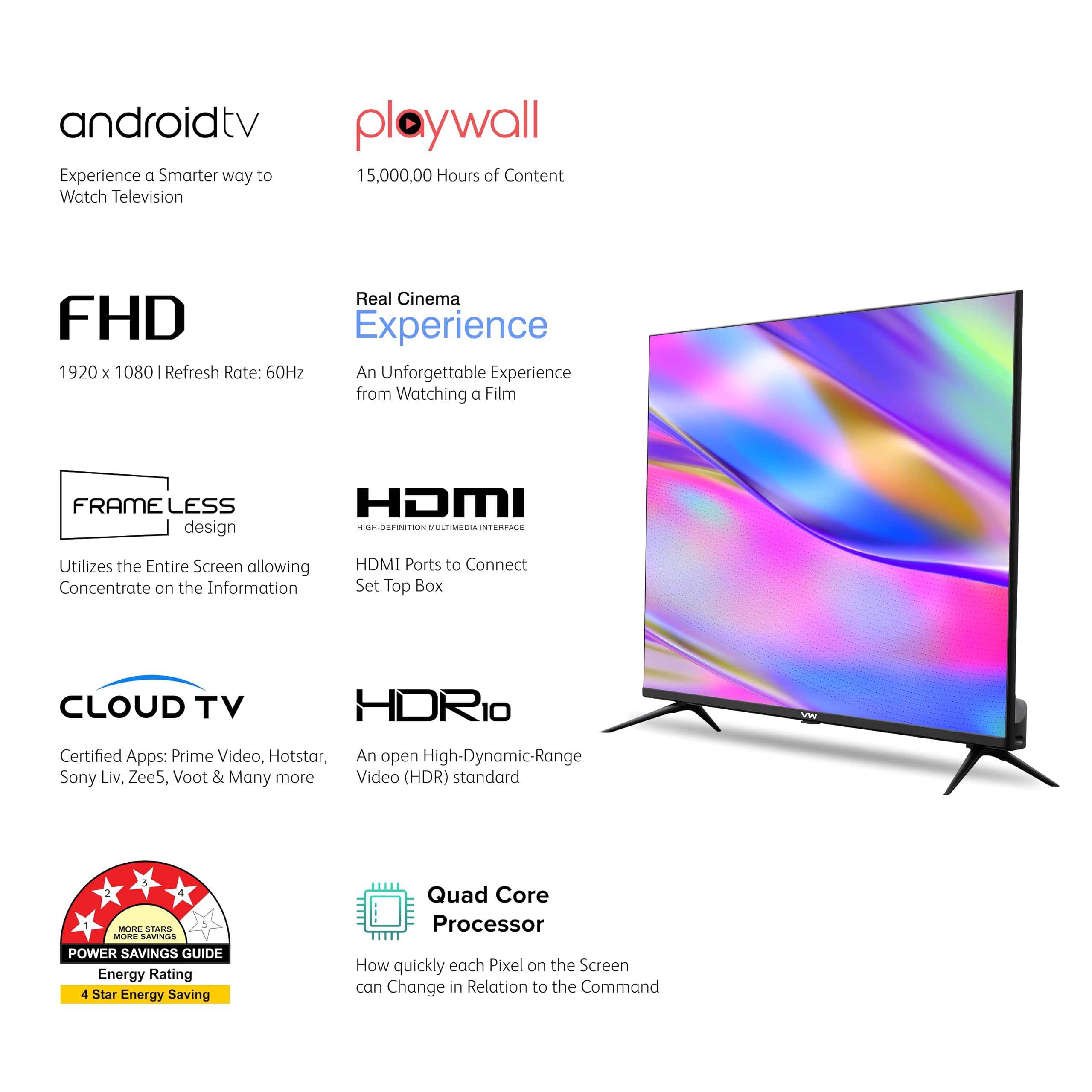 VW 101 cm (40 inches) Playwall Frameless Series Full HD Android Smart LED TV VW40F1 (Black) price under 20000 Visio World Product form⭐⭐⭐⭐⭐ Top-Rated Product (Based on publicly available Amazon ratings)Rs26,999.00 Rs13,499.00 Price & availability may change on Amazon🚚 Payments, delivery & returns via Amazon🔗 As an Amazon Associate, we earn from qualifying purchases Buy on Amazon → Add to cart Amazon secure & safe checkout, shipping and easy return