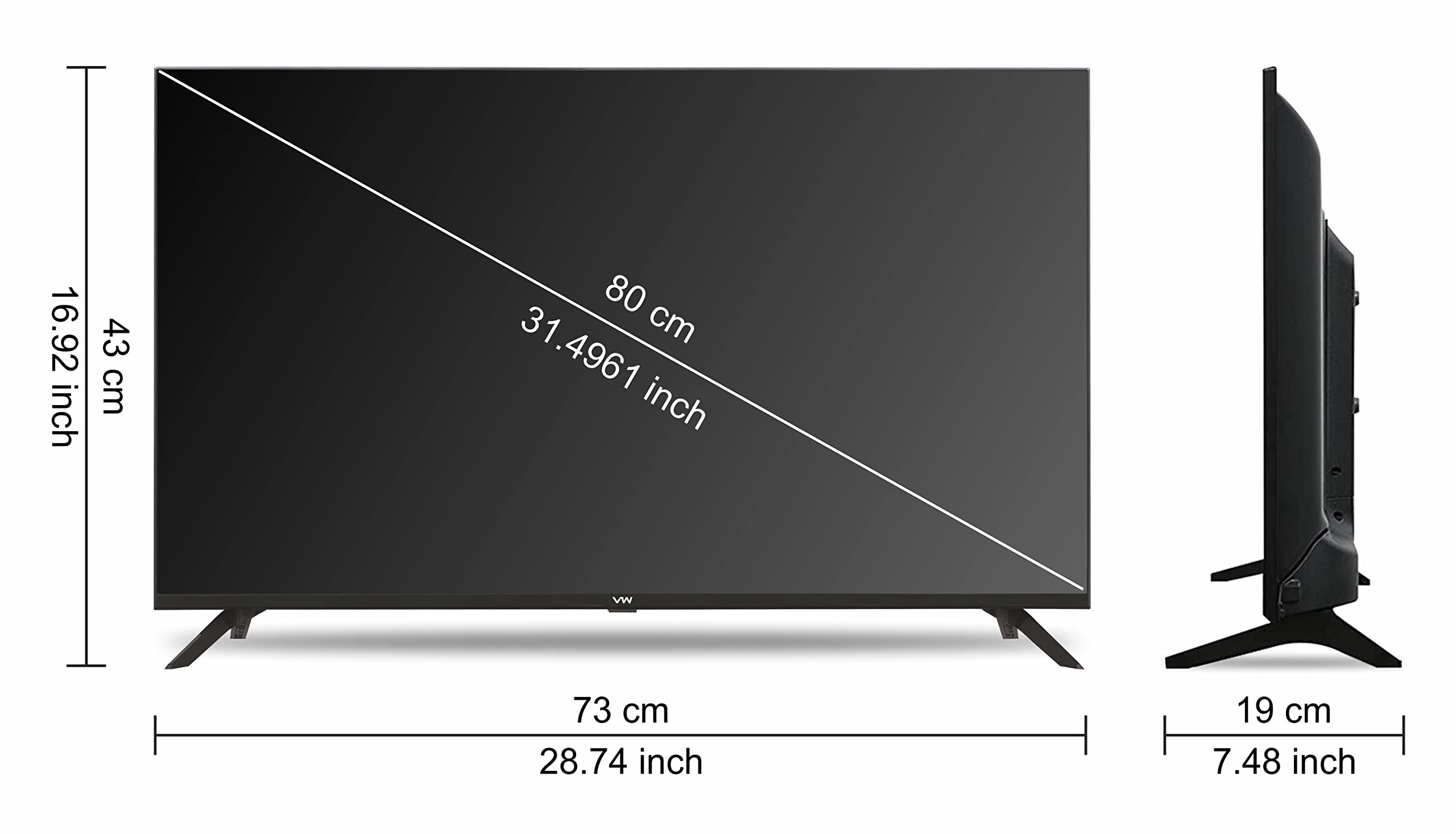 VW 80 cm (32 inches) Frameless Series HD Ready LED TV VW32A (Black)