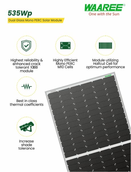 WAAREE II Bifacial 535 Watt Solar Panel (Pack of 2, 535 X 2) Halfcut 24 Volts 144 Cells Mono PERC Bifacial Solar Panels II 30 Years Performance Warranty II