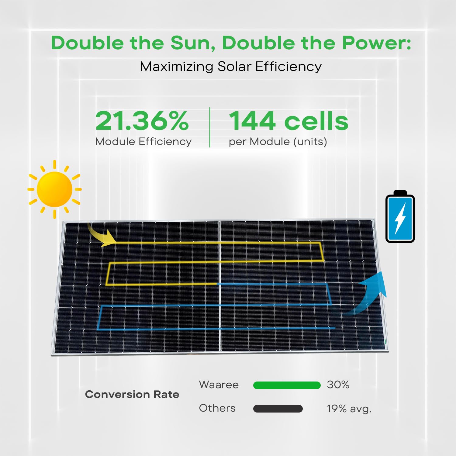 WAAREE II Bifacial 550 Watt II Dual Glass Bifacial Mono PERC Solar Panel II 144 Half-Cut VOC 49.91 II 30 Years Performance Warranty II (Pack of 6) (Bi-55-550, 3.3kW)