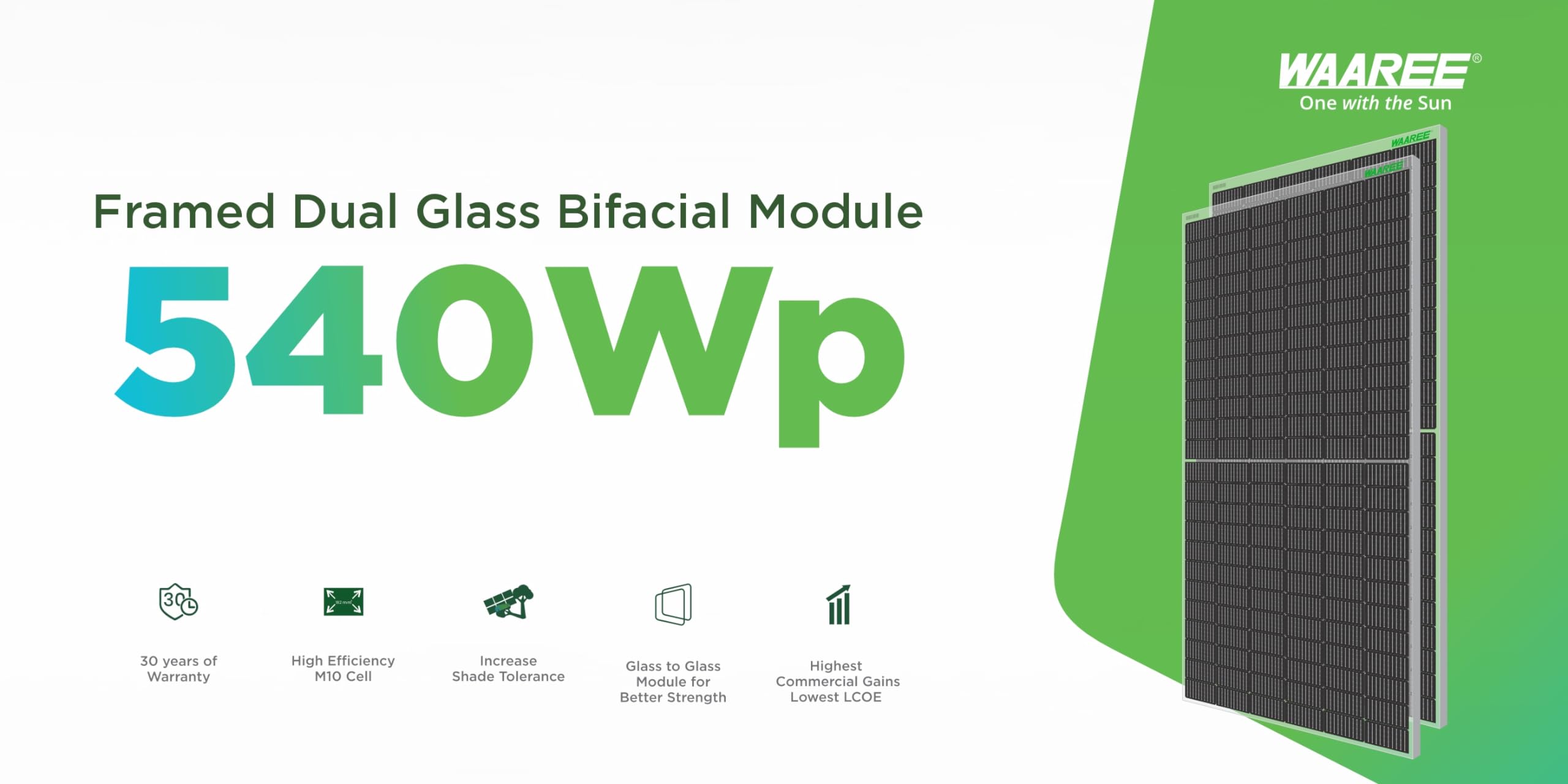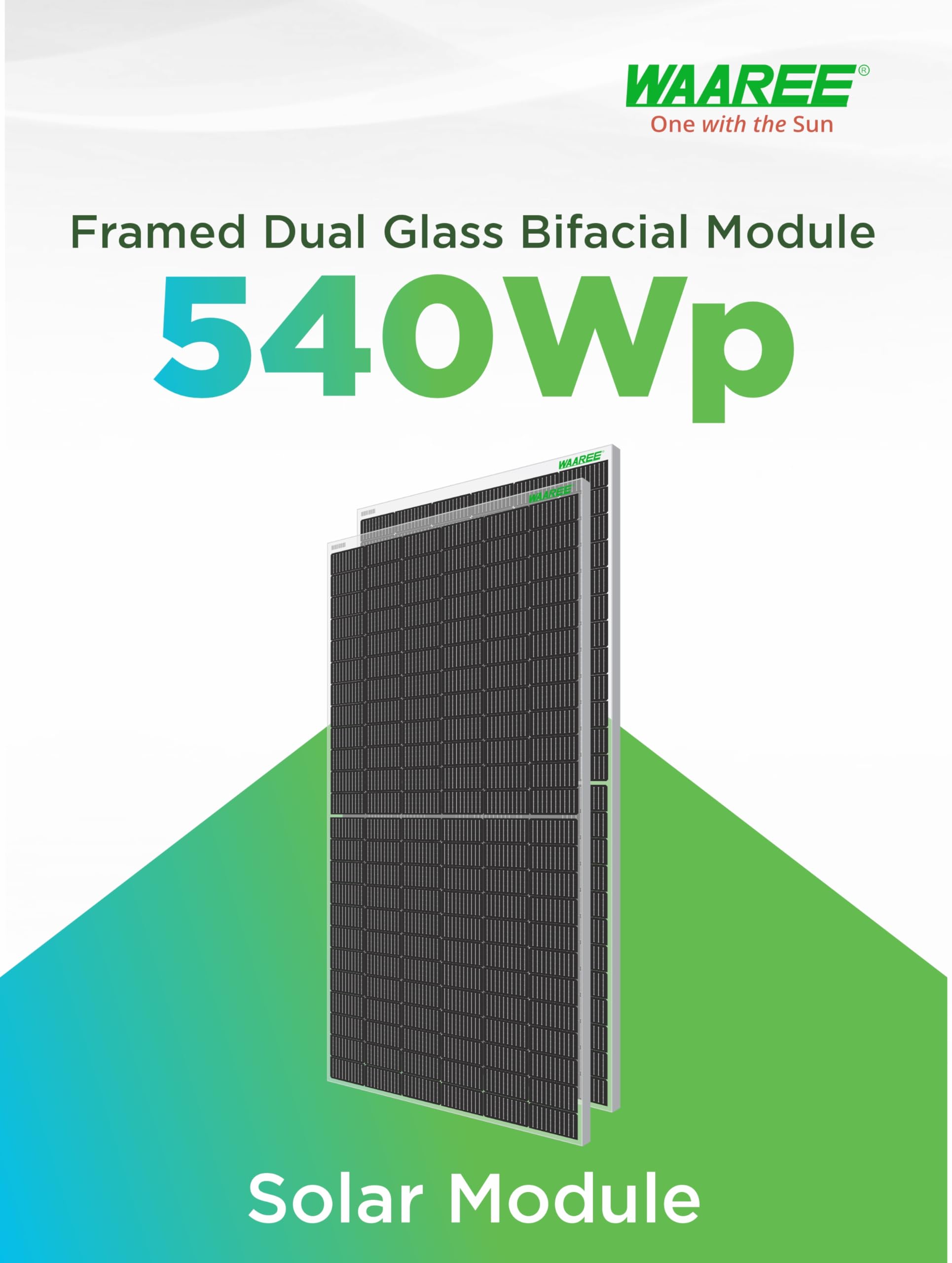 WAAREE II Single Panel II 545 Watt Bifacial Mono Perc Solar Panel II 144 Half-Cut Cell II 49.91 Voc II 21.36A II 30 Years Performance Warranty II (Bi-55-545 Pack of 1)