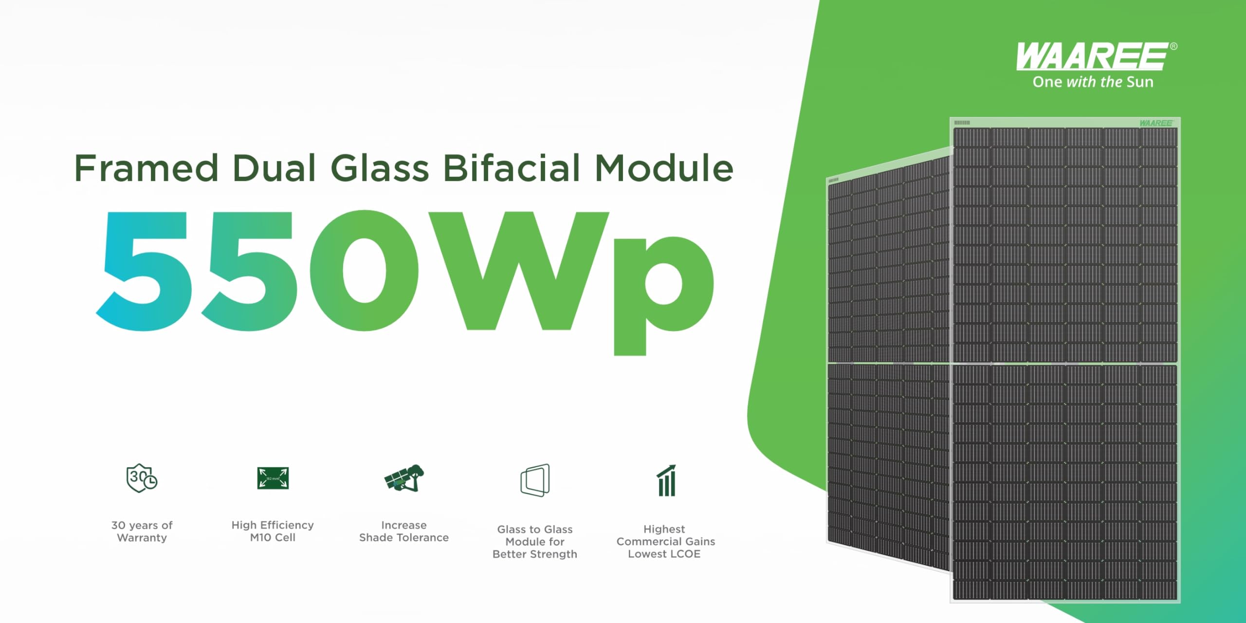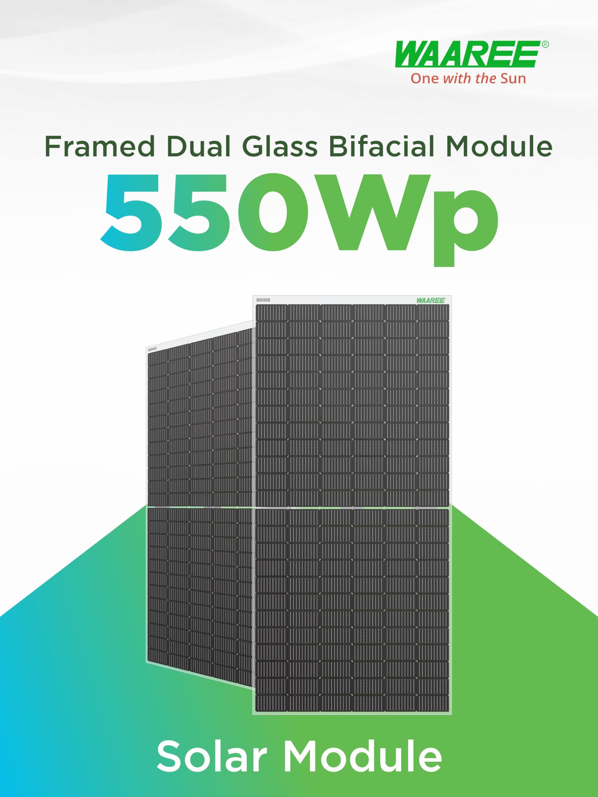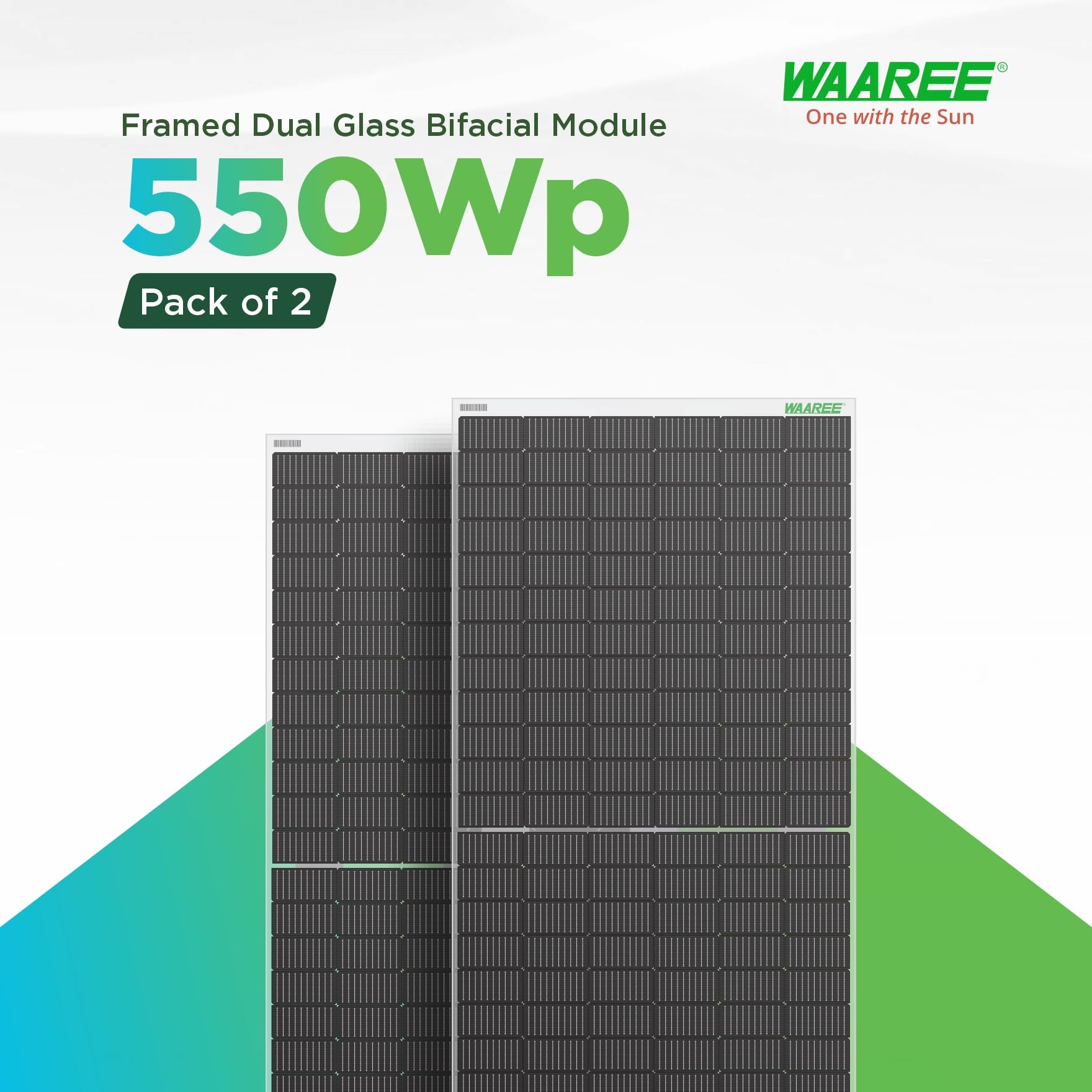 WAAREE Solar Panel 550 Watt II Pack of 2 II Half-Cut 144 Cells II Dual Glass Mono Perc Bifacial Solar Panels II 30 Years Performance Warranty II (1kW) (Bi-55-550 Pack of 2,)
