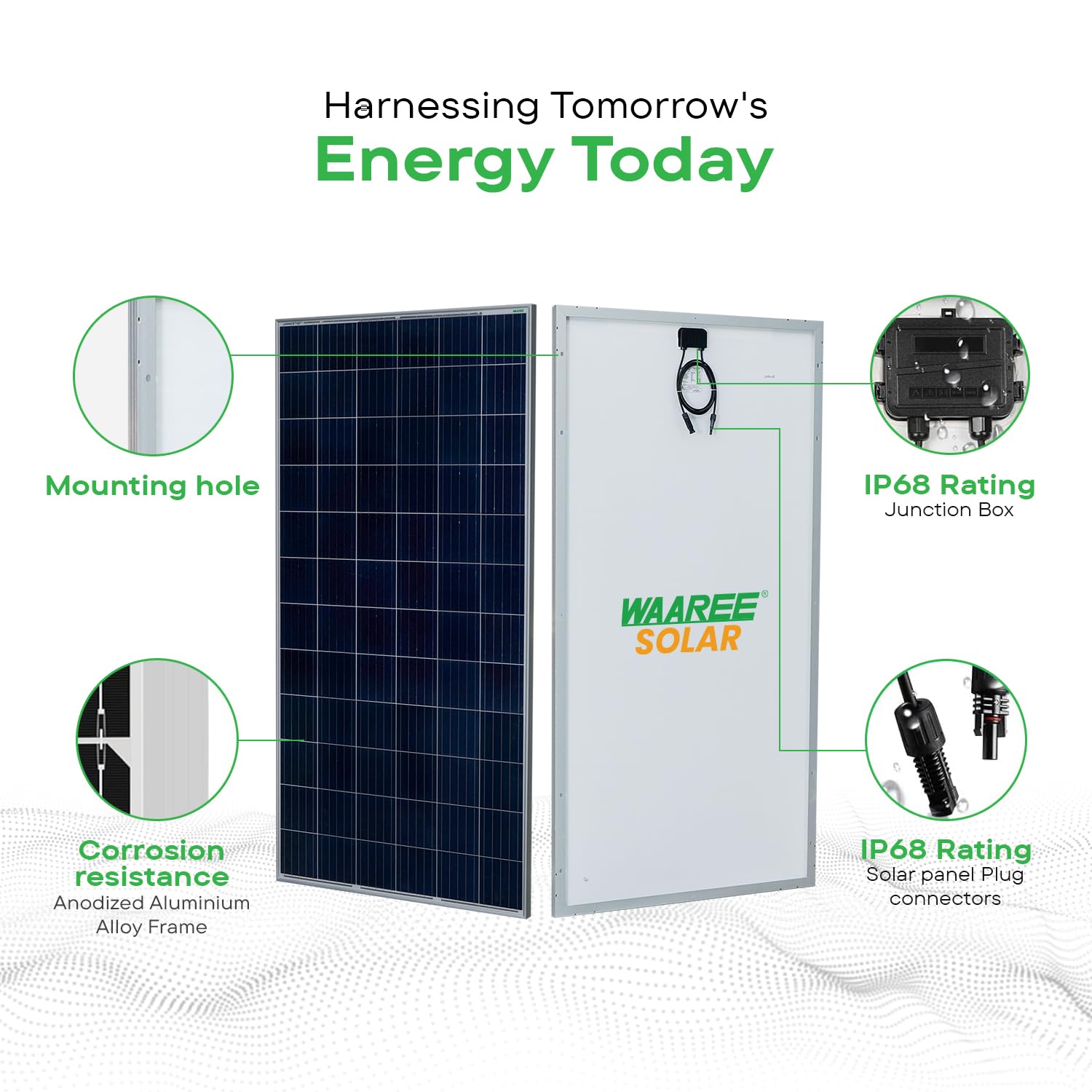 Brand: WAAREEFeatures: Polycrystalline Solar Panels : Made from multiple silicon fragments melted together, offering a balance between efficiency and cost-effectiveness.... Read more