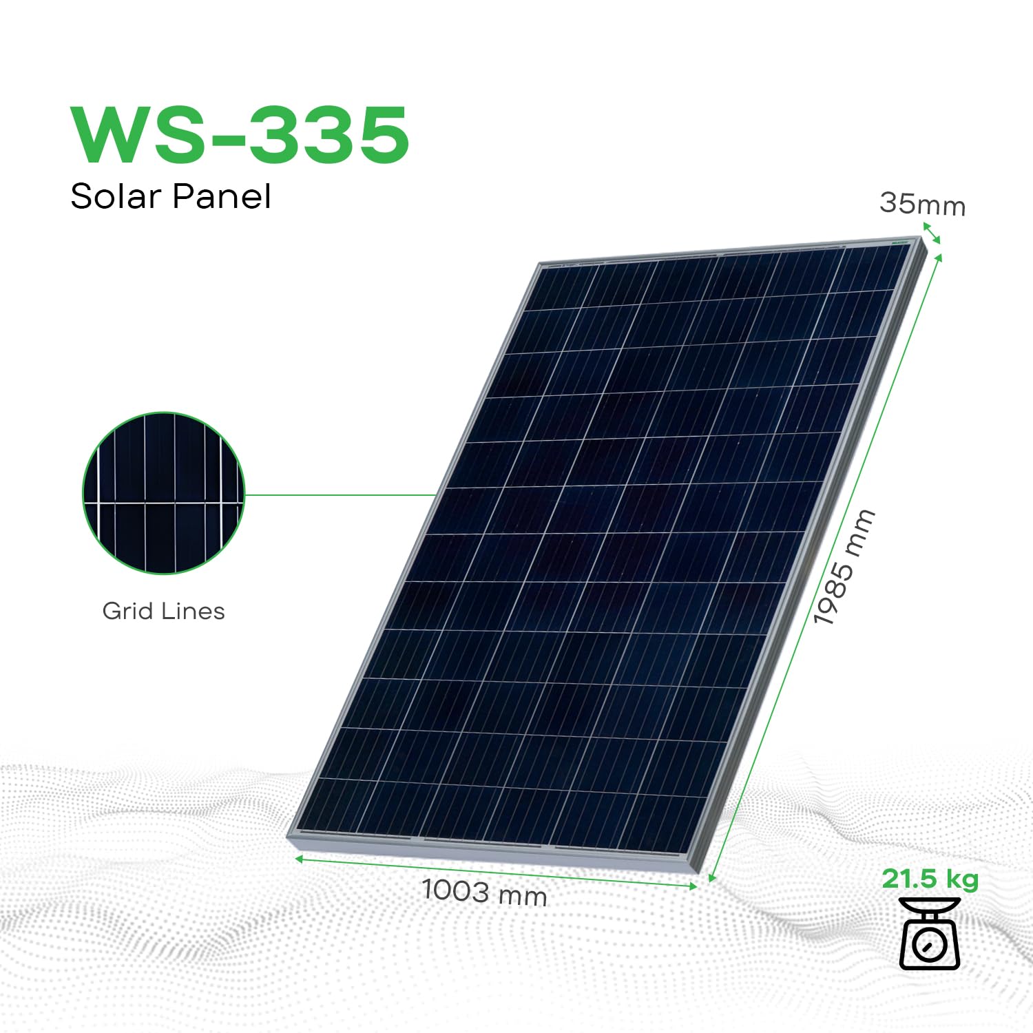 WAAREE Solar Panel (Pack of 6) Polycrystalline 335 Watt 72 Cells 24 Volts Solar Panels,Aluminum Alloy (WS-335, 2kW)