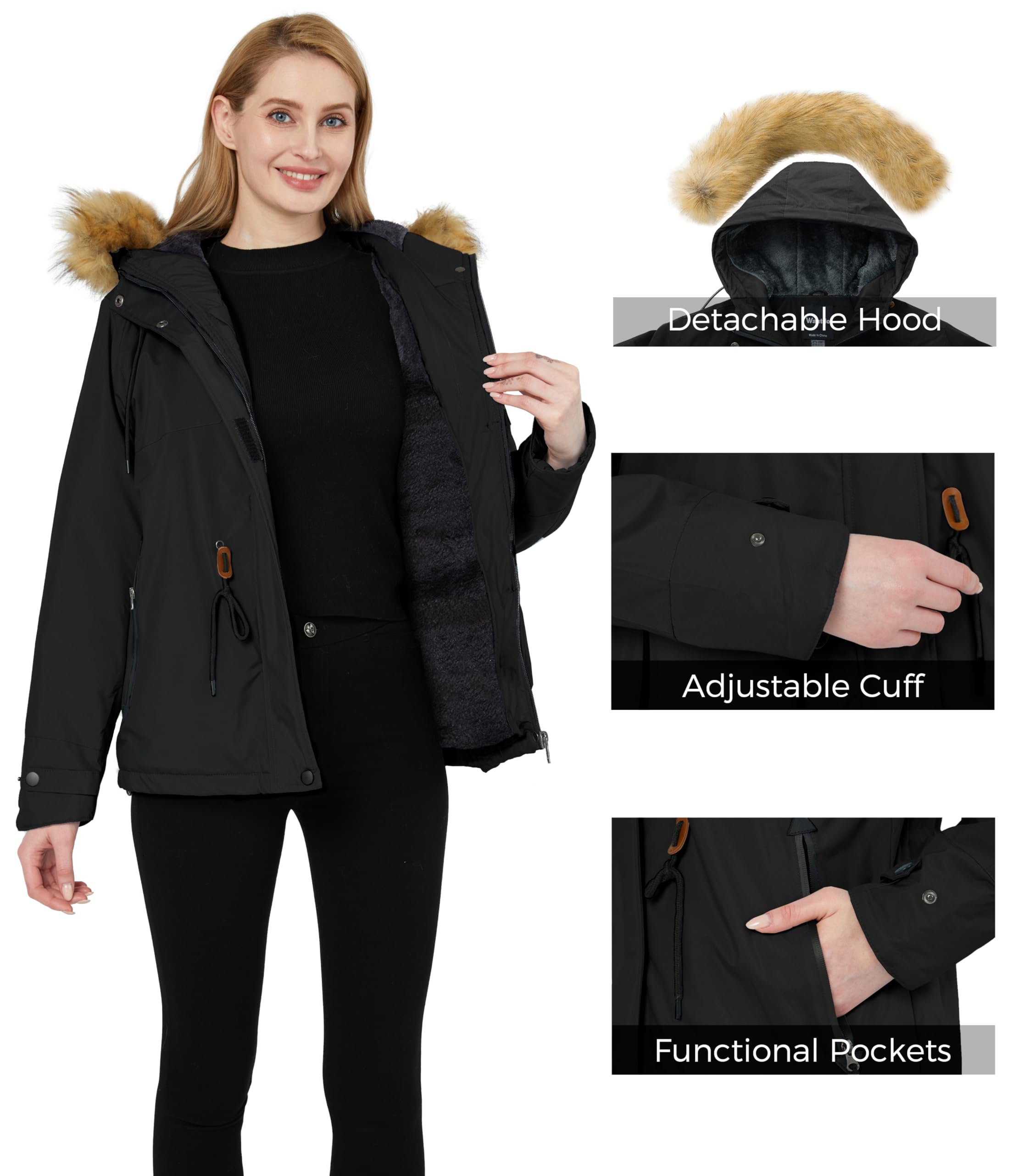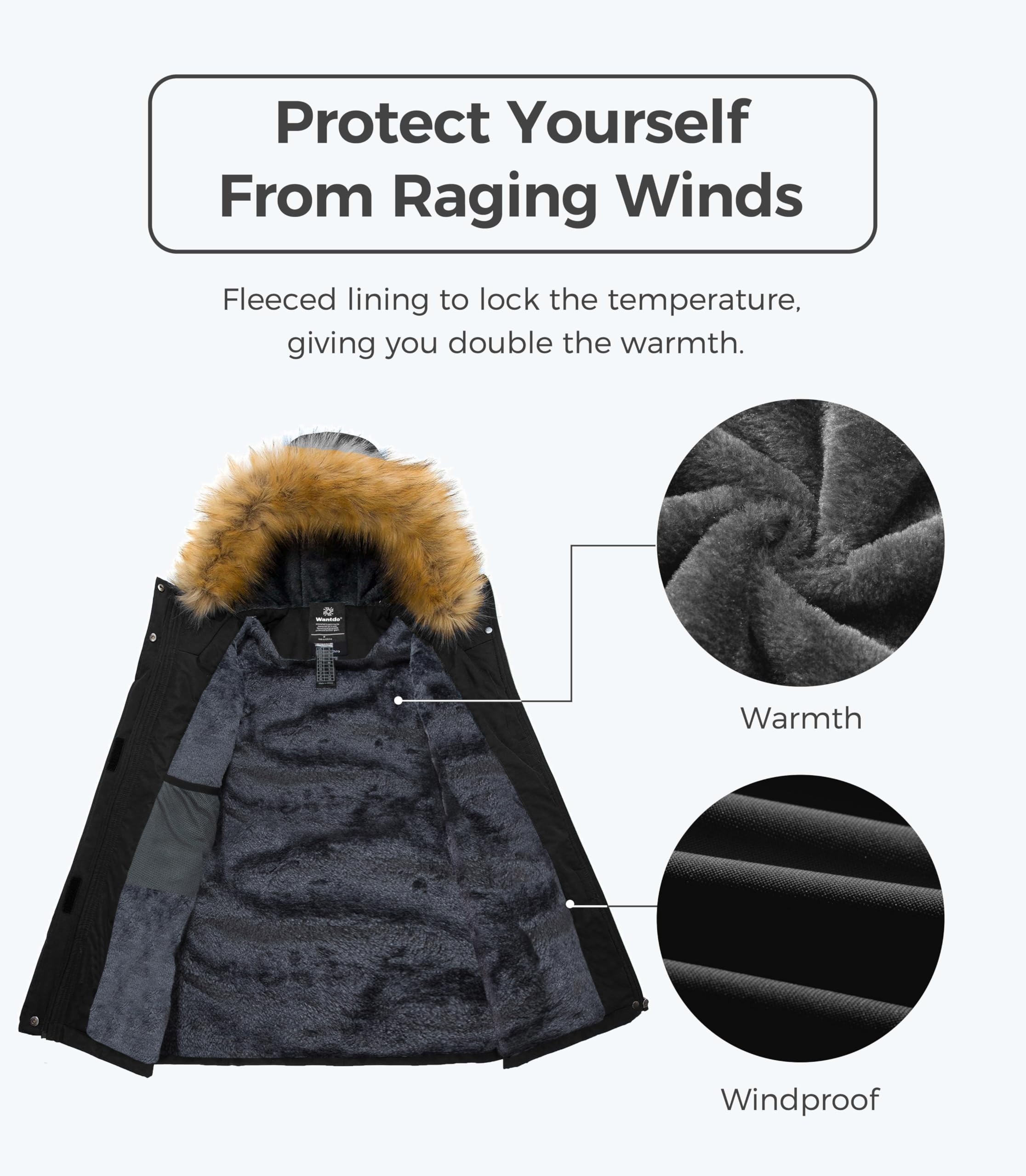 Wantdo Womens Waterproof Ski Jacket Hooded Winter Snow Coat Parka Black Large