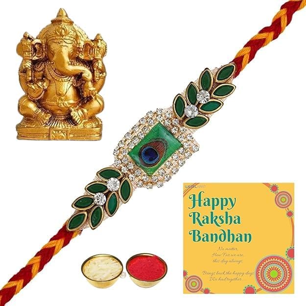 Webelkart Premium Peacock Rakhi for Brother/Bhaiya/Men/Sister/Bhabhi/Kids with Cute Ganesha Idol for Car Dashboard