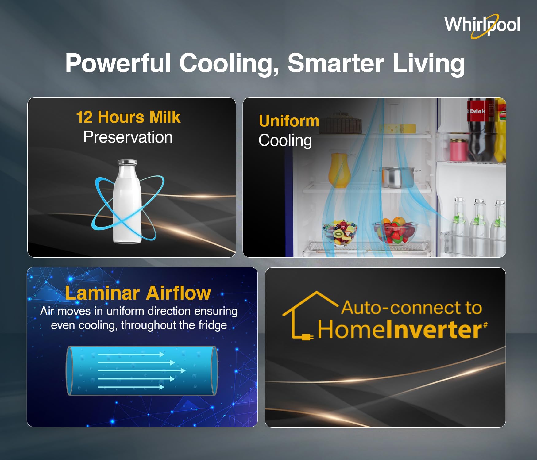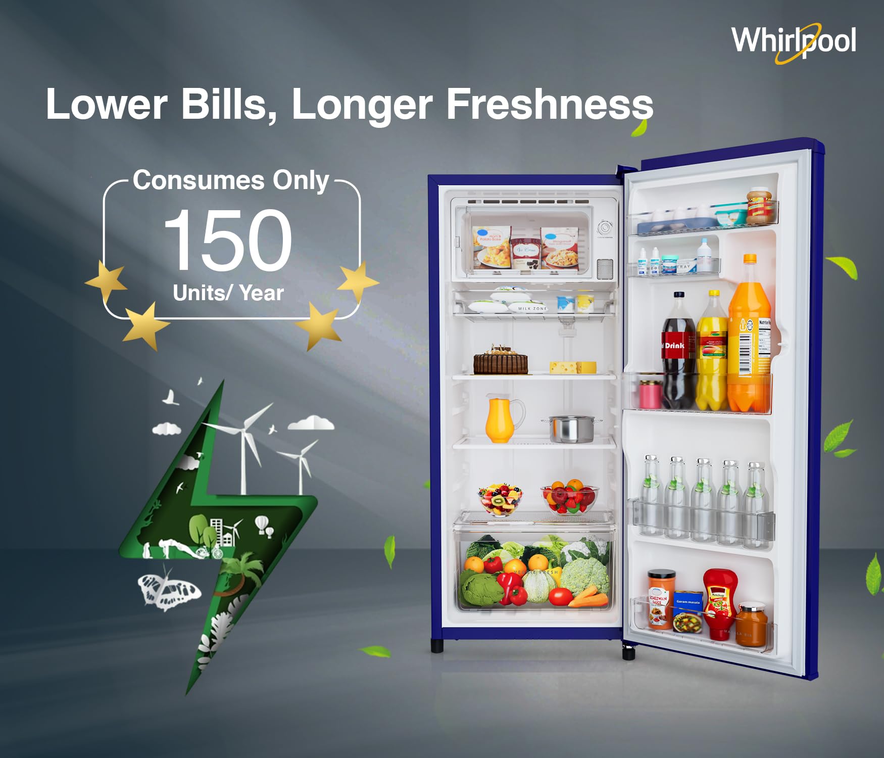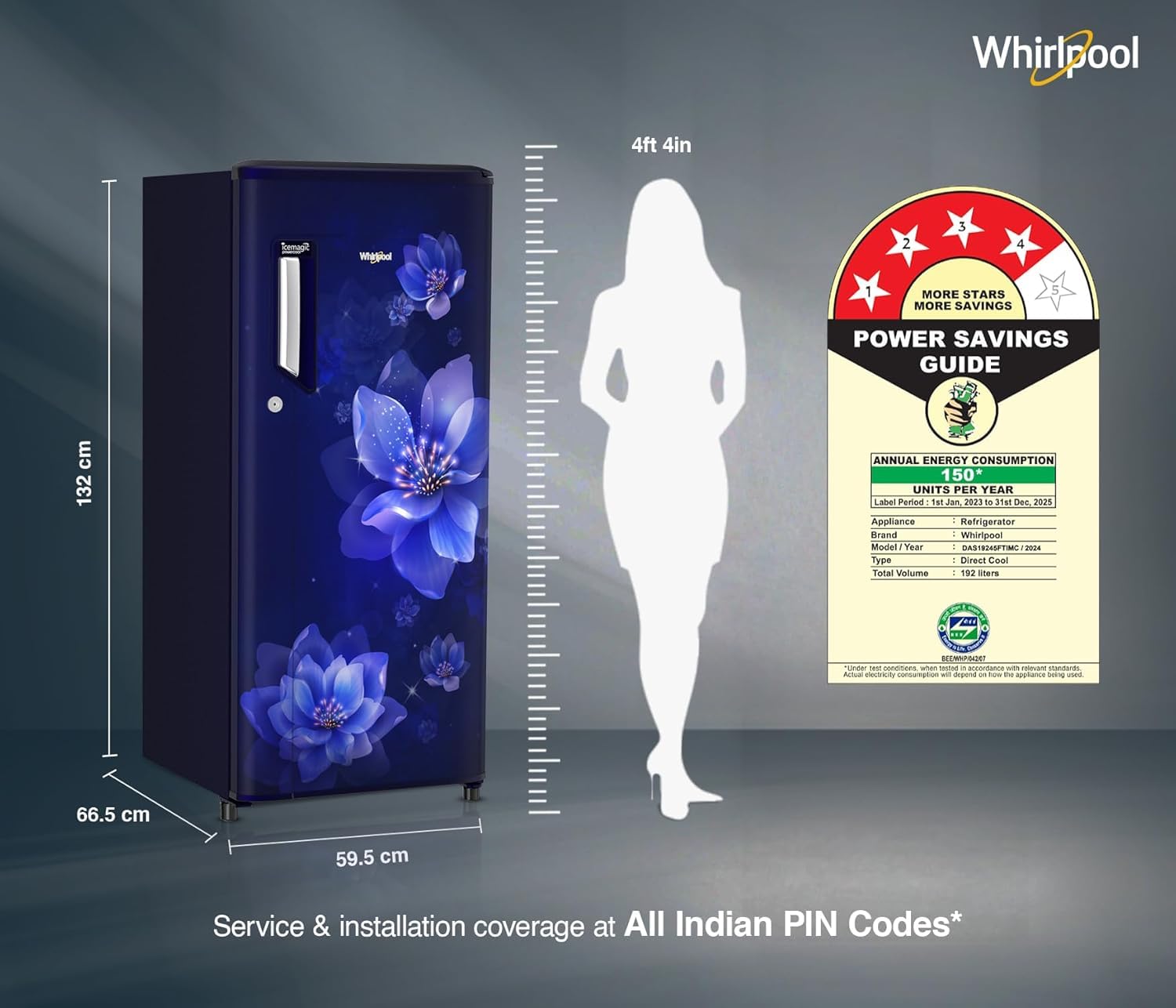 Brand: WhirlpoolColor: Sapphire Mulia-ZFeatures: Single Door 4 Star Capacity: 192 liters for families with 2 -3 members Energy Rating -... Read more