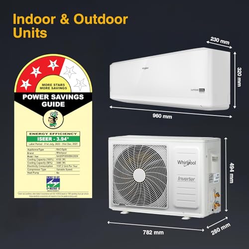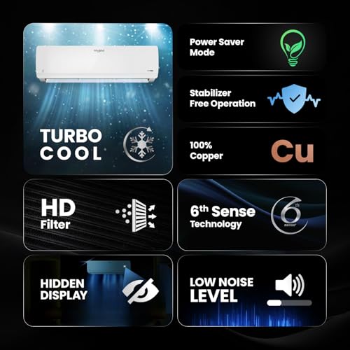 Whirlpool 2.0 Ton 3 Star, Supremecool Inverter Split AC (SUPREMECOOL 20T 3S INV EXP S5N3PB0, Copper, Convertible 4-in-1 Cooling Mode, HD Filter White)