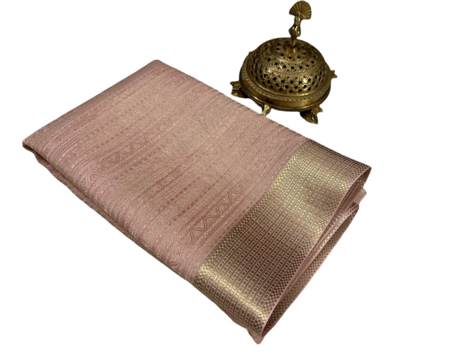 Women Pure Brocade Mysore Silk Sarees, Zari Weaving, Rich Pallu, Jacquard Blouse, Peach Saree