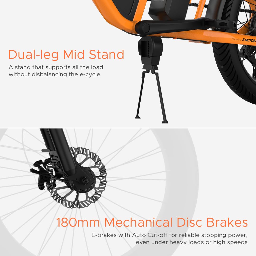 Xcape G1 Cargo Electric Cycle with Dual 48V 10.2Ah Removable Batteries | 250W Motor | Up to 100 km Range | Heavy-Duty Longtail Frame | Front Suspension | 90% Assembled | Powered by EMotorad (Orange)