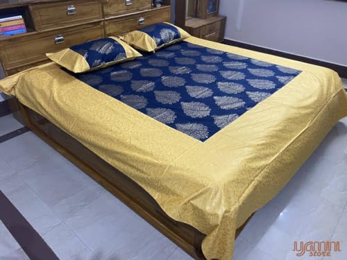 YAMINI Gold Toned Patola Print Jaipuri Double Bedsheet with Pillow Cover 100% Cotton, Size 8.5ft x 8ft