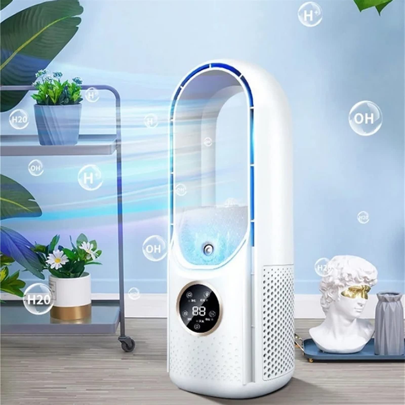 ZAPORA Mini Air Conditioner Air Cooler Leafless Electric Fan Portable Air Conditioner Silent Timer Cooling Fan Humidifier Purifier