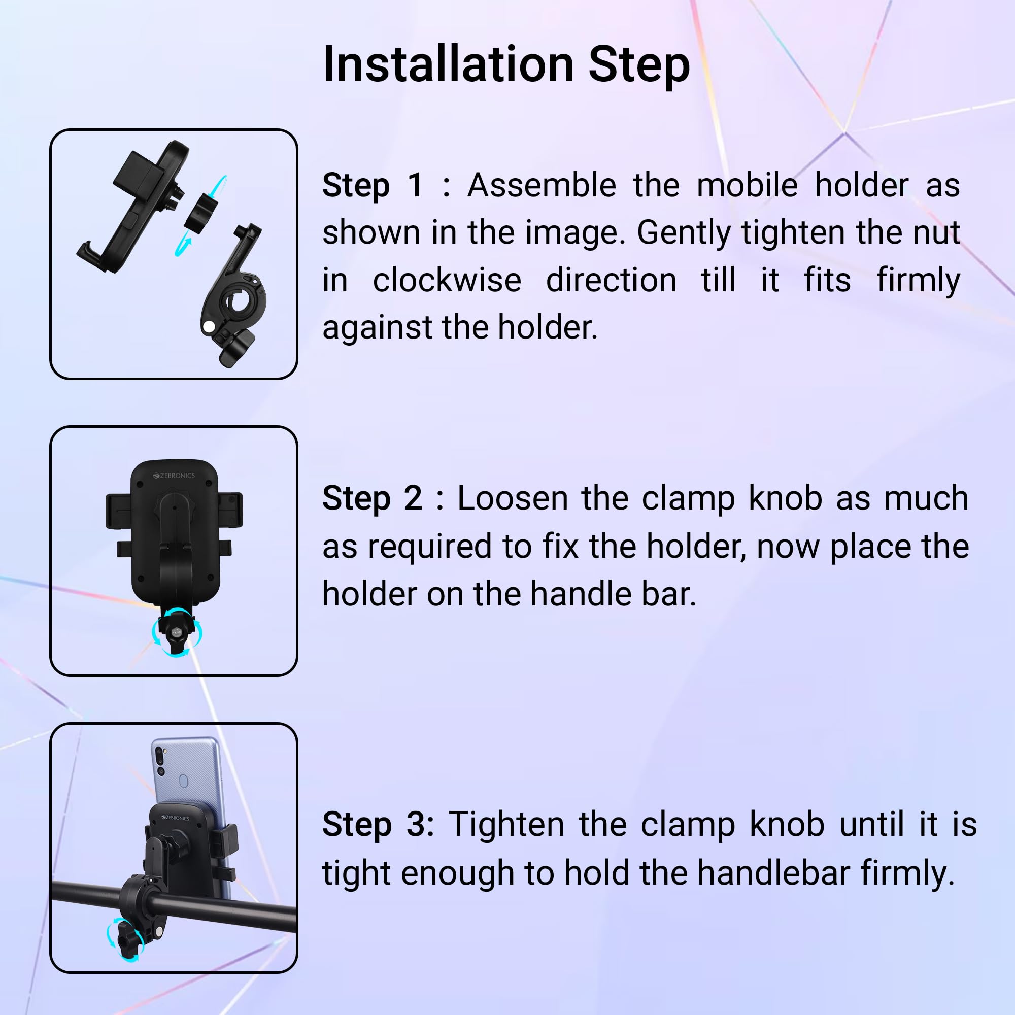 ZEBRONICS New Launch BMH100, Bike Smartphones Mobile Holder, Upto 6.8 Inches, 360° Rotatable, One Press Lock and Release, Stable and Secure, Anti-Skid Silicone Pads, for Maps & Navigation