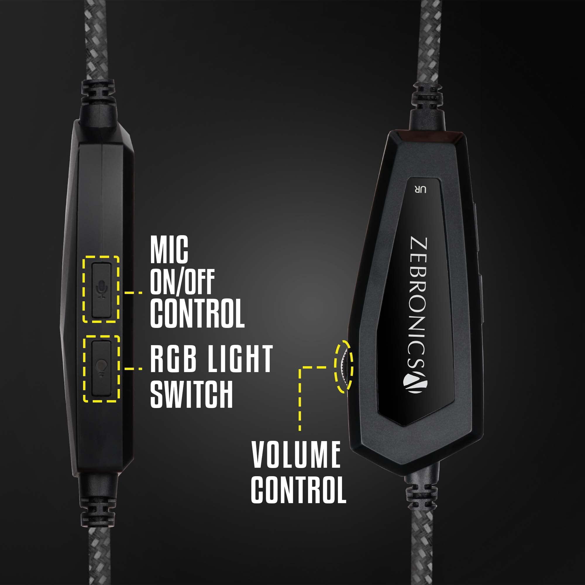 Zebronics Zeb-Blitz USB Over Ear Gaming Headphone with Dolby Atmos,RGB LED,Windows Software,Simulated 7.1 Surround Sound,2.4 Meter Braided Cable,Flexible Mic,Padded Headband & Ear Cushions(Black)