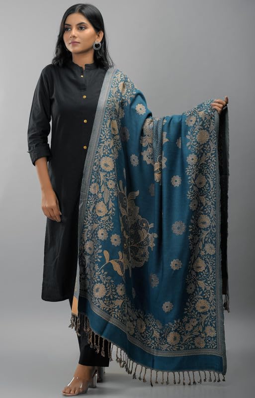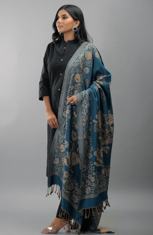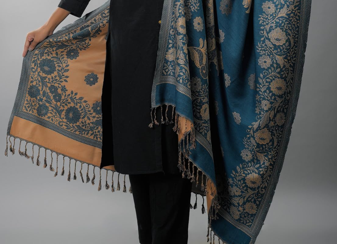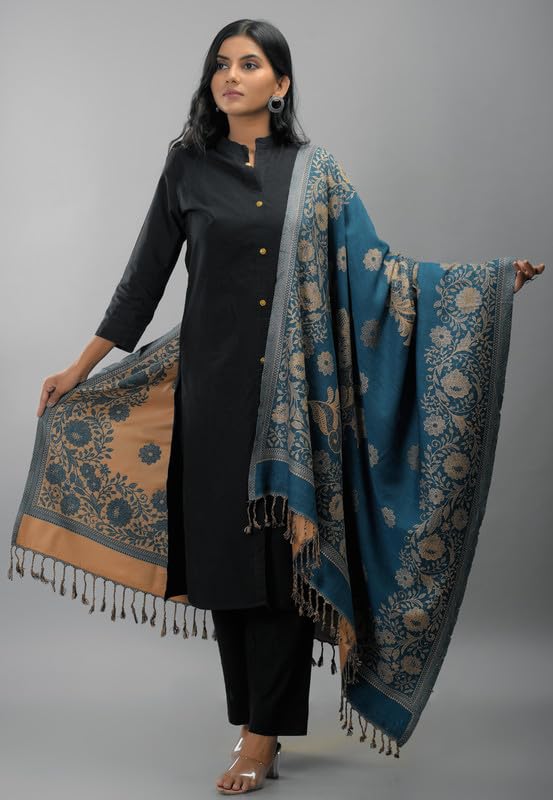 Zingle Women's Kashmiri Warm Woolen Shawl, Printed Desgin, Reversable Shawl, Funda desgin, Pashmina Thread| Winter Wear|Handloom Desgin|